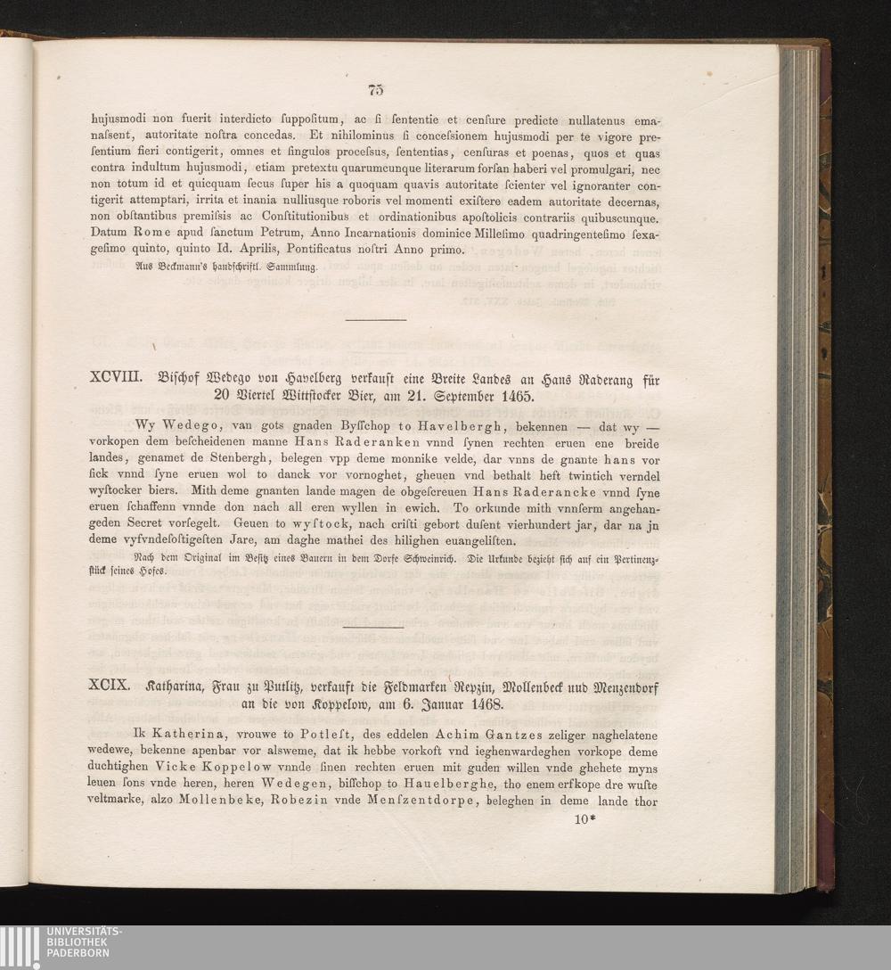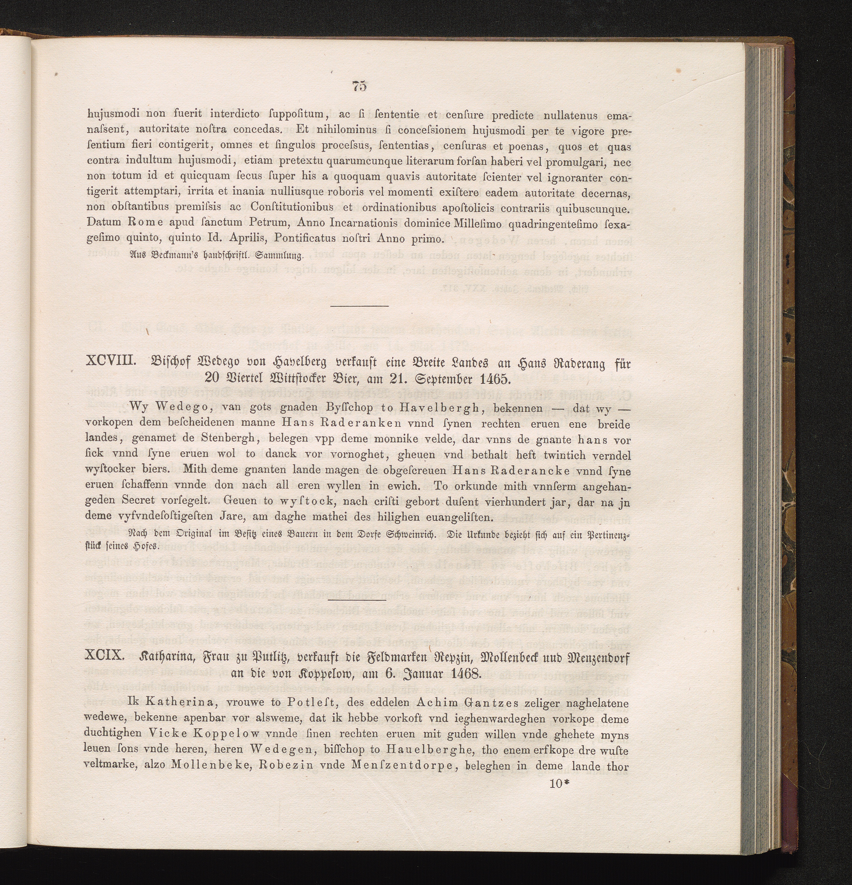 XCIX. Katharina, Frau zu Putlitz, verkauft die Feldmarken Repzin, Mollenbeck und[...]
