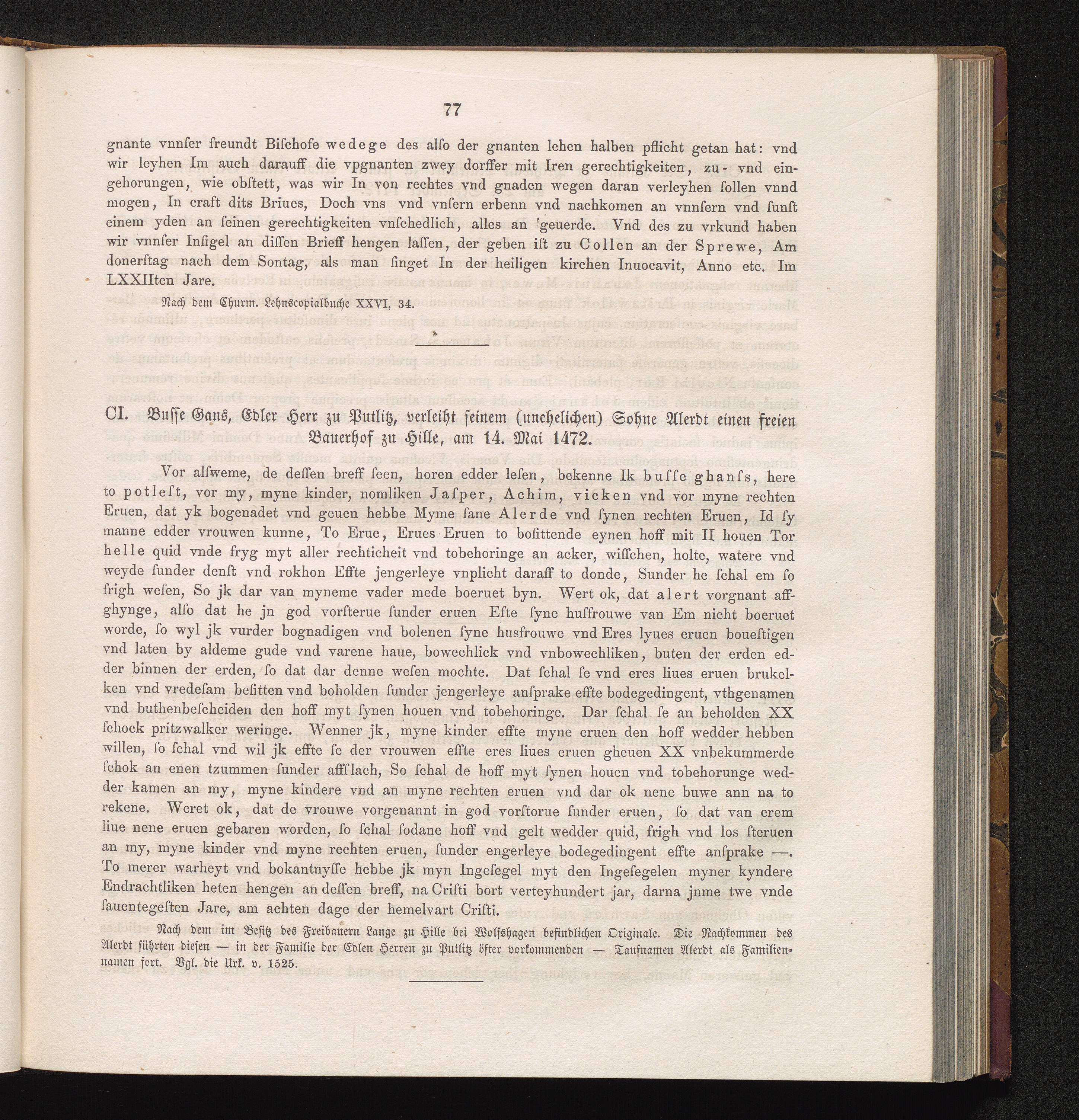 C. Kurfürst Albrecht giebt dem Bischofe Wedego von Havelberg die Dörfer Groß- und[...]