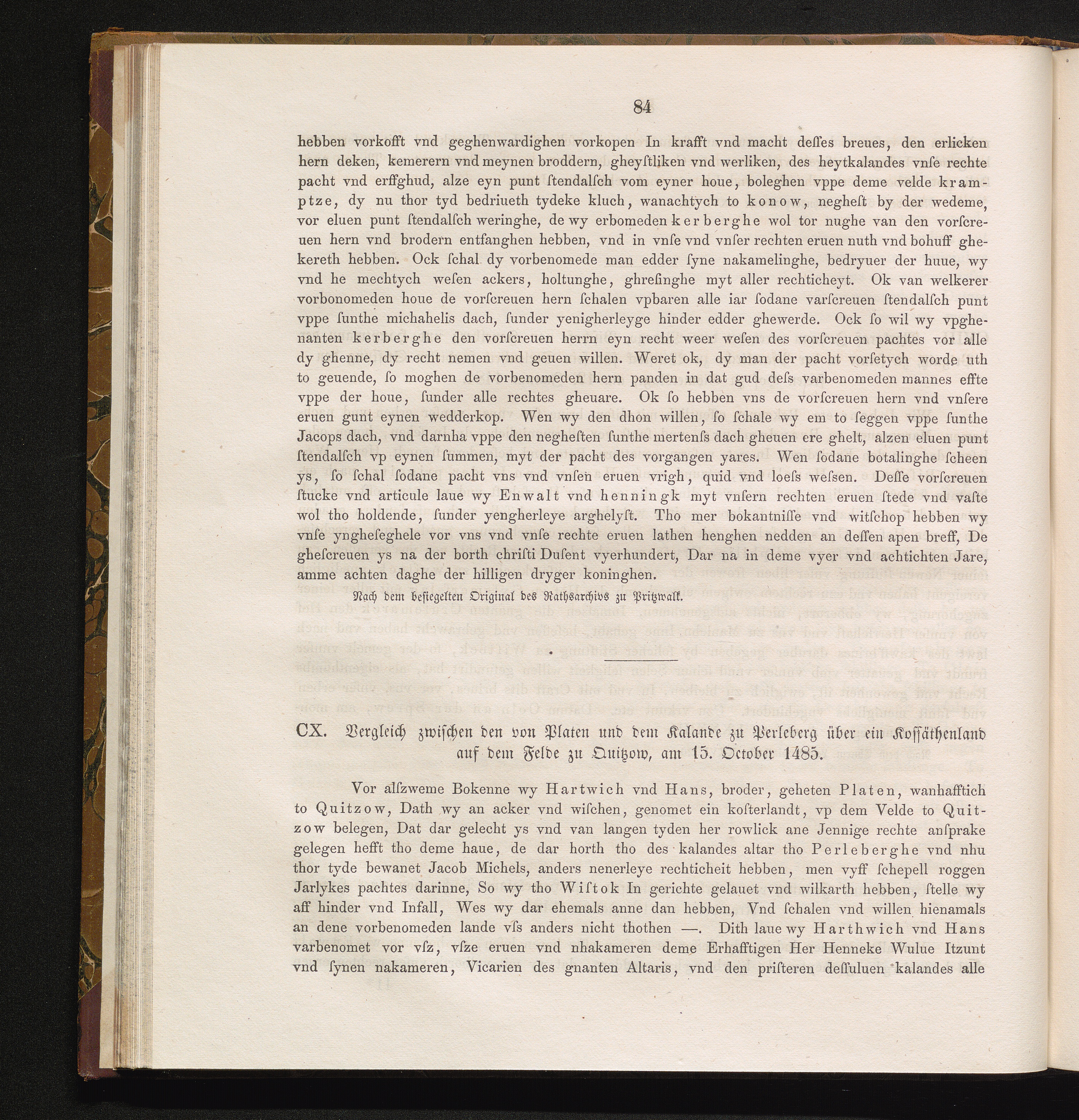 CX. Vergleich zwischen den von Platen und dem Kalande zu Perleberg über ein Kossäthenland[...]