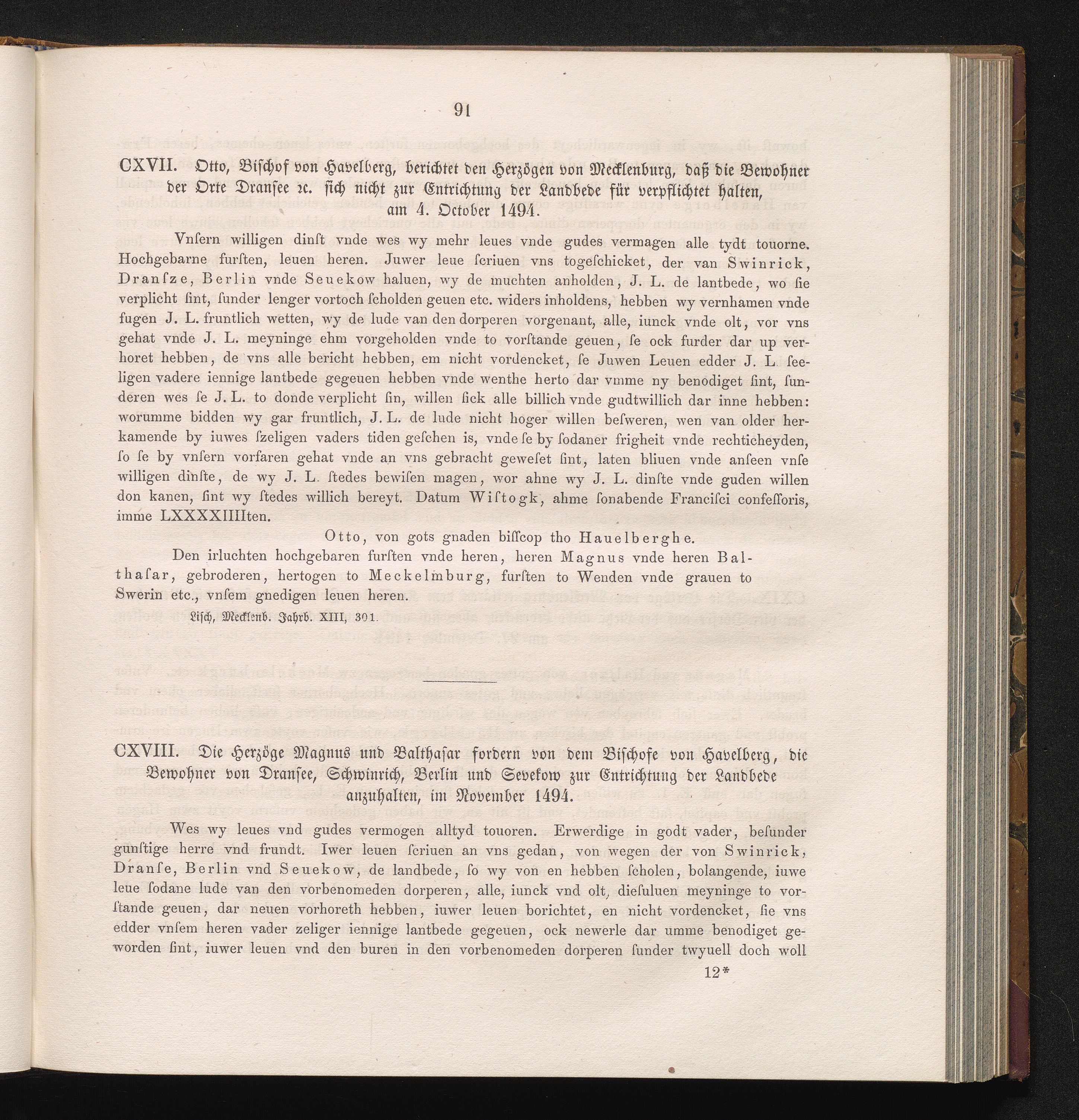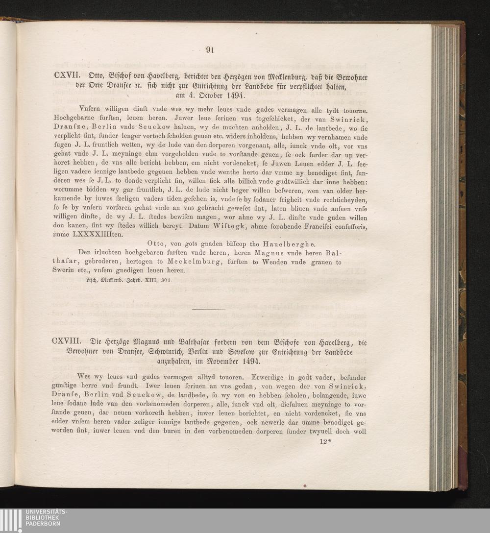 CXVII. Otto, Bischof von Havelberg, berichtet den Herzögen von Mecklenburg, daß die[...]