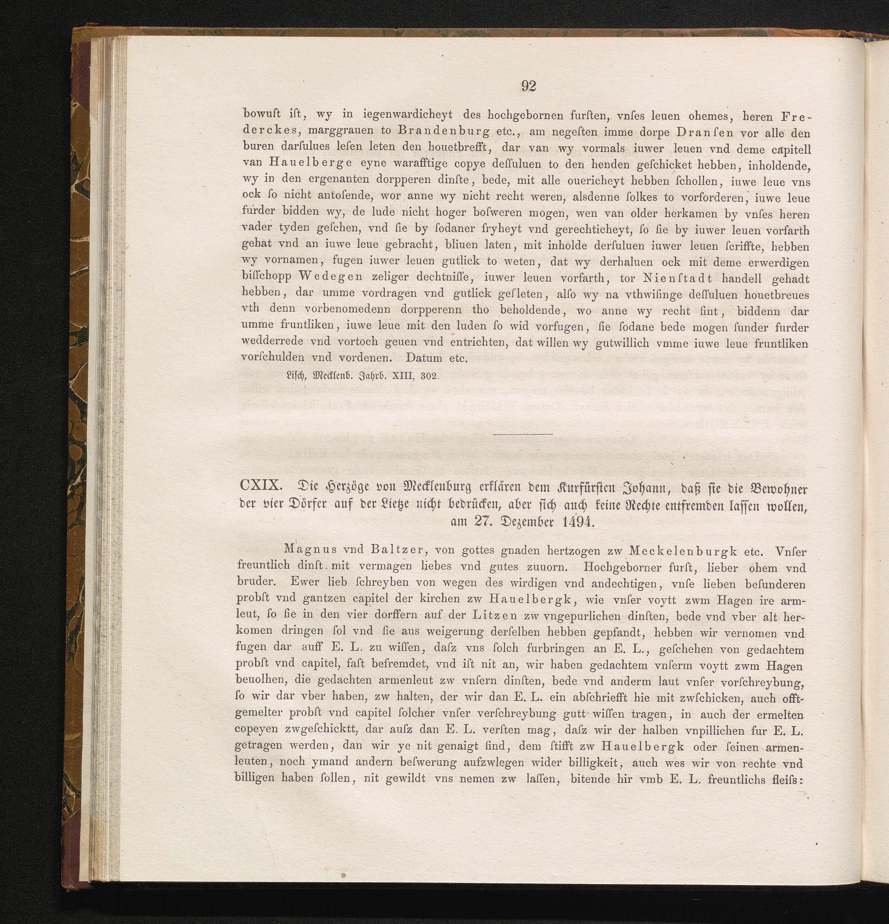 CXIX. Die Herzöge von Mecklenburg erklären dem Kurfürsten Johann, daß sie die Bewohner[...]