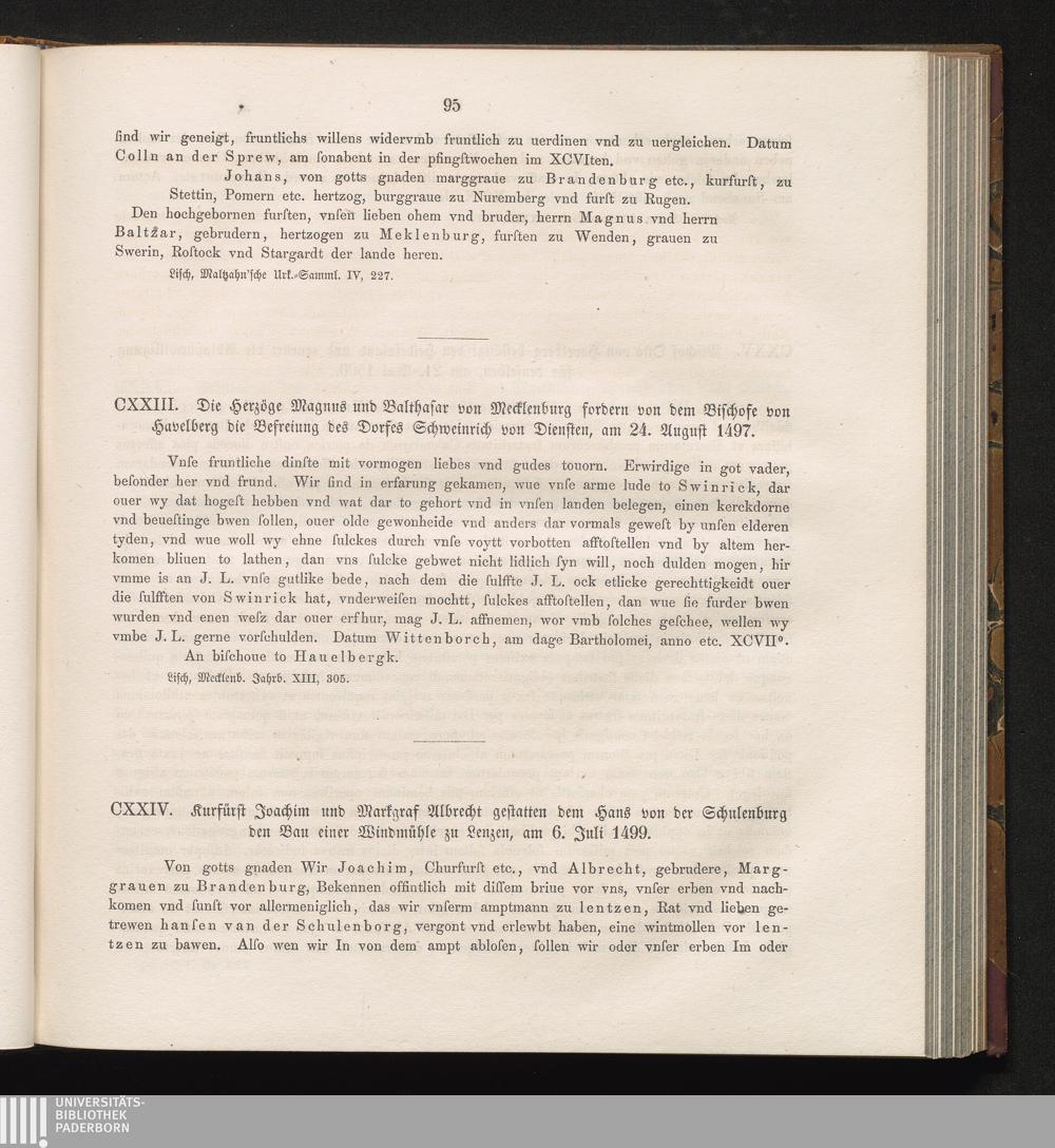 CXXIII. Die Herzöge Magnus und Balthasar von Mecklenburg fordern von dem Bischofe[...]