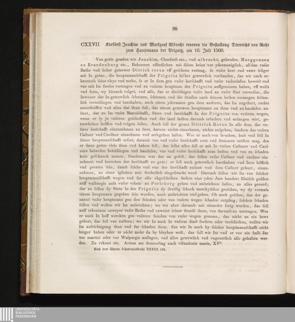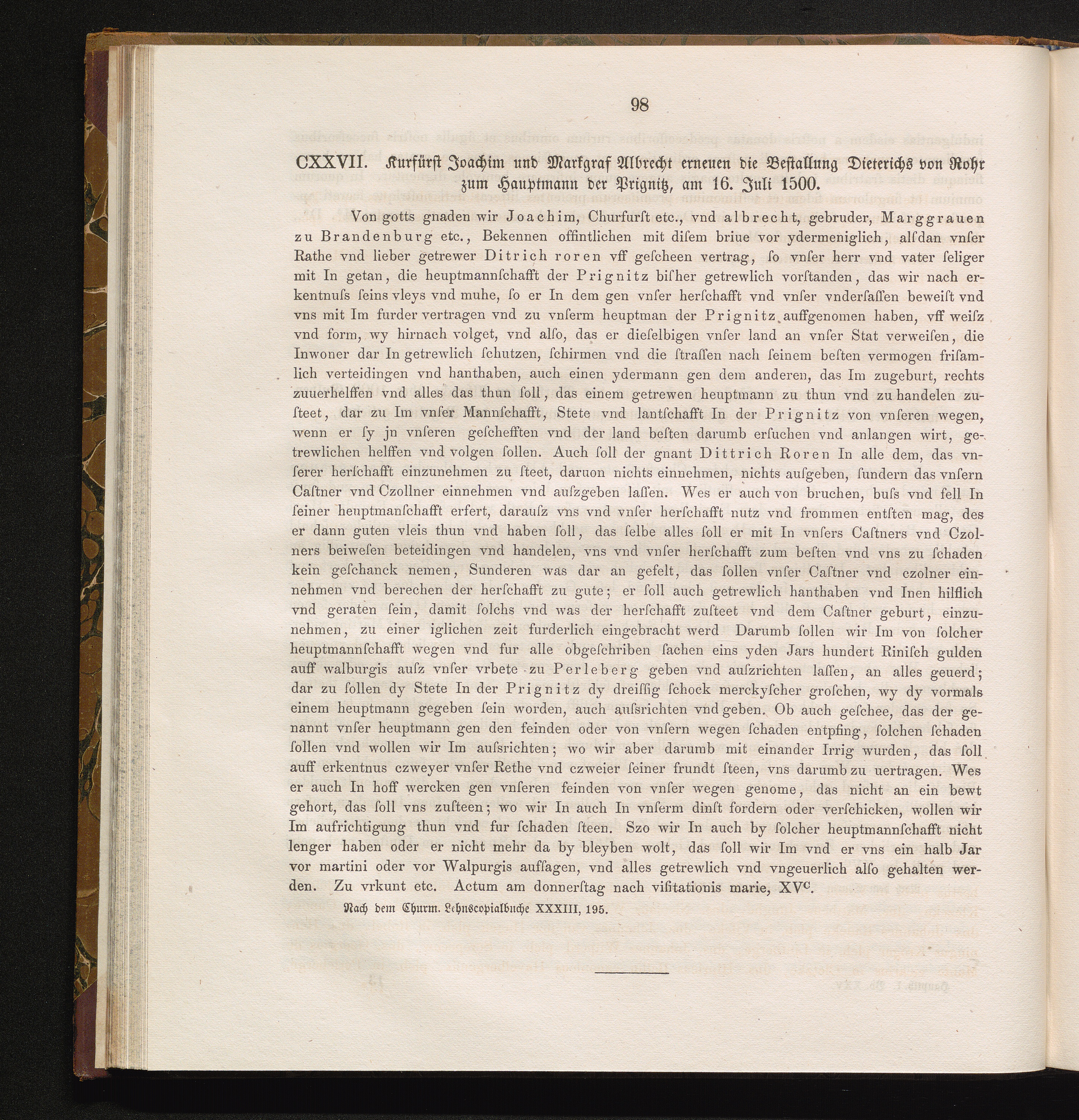 CXXVII. Kurfürst Joachim und Markgraf Albrecht erneuen die Bestallung Dieterichs[...]