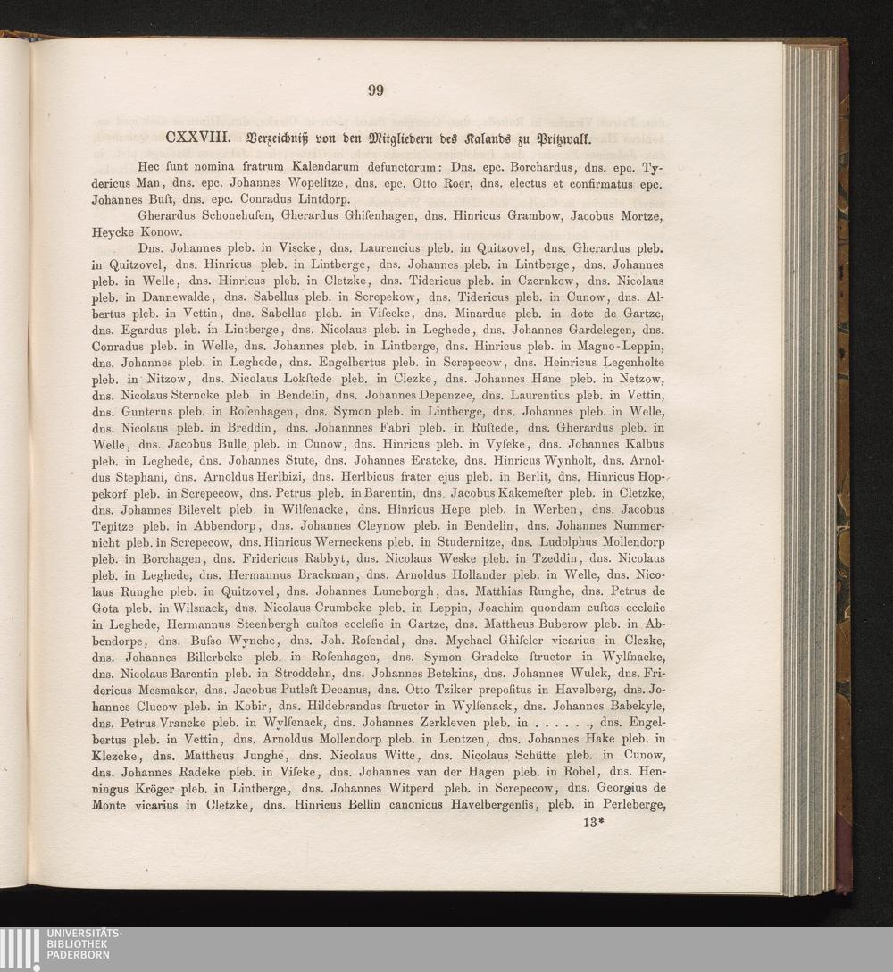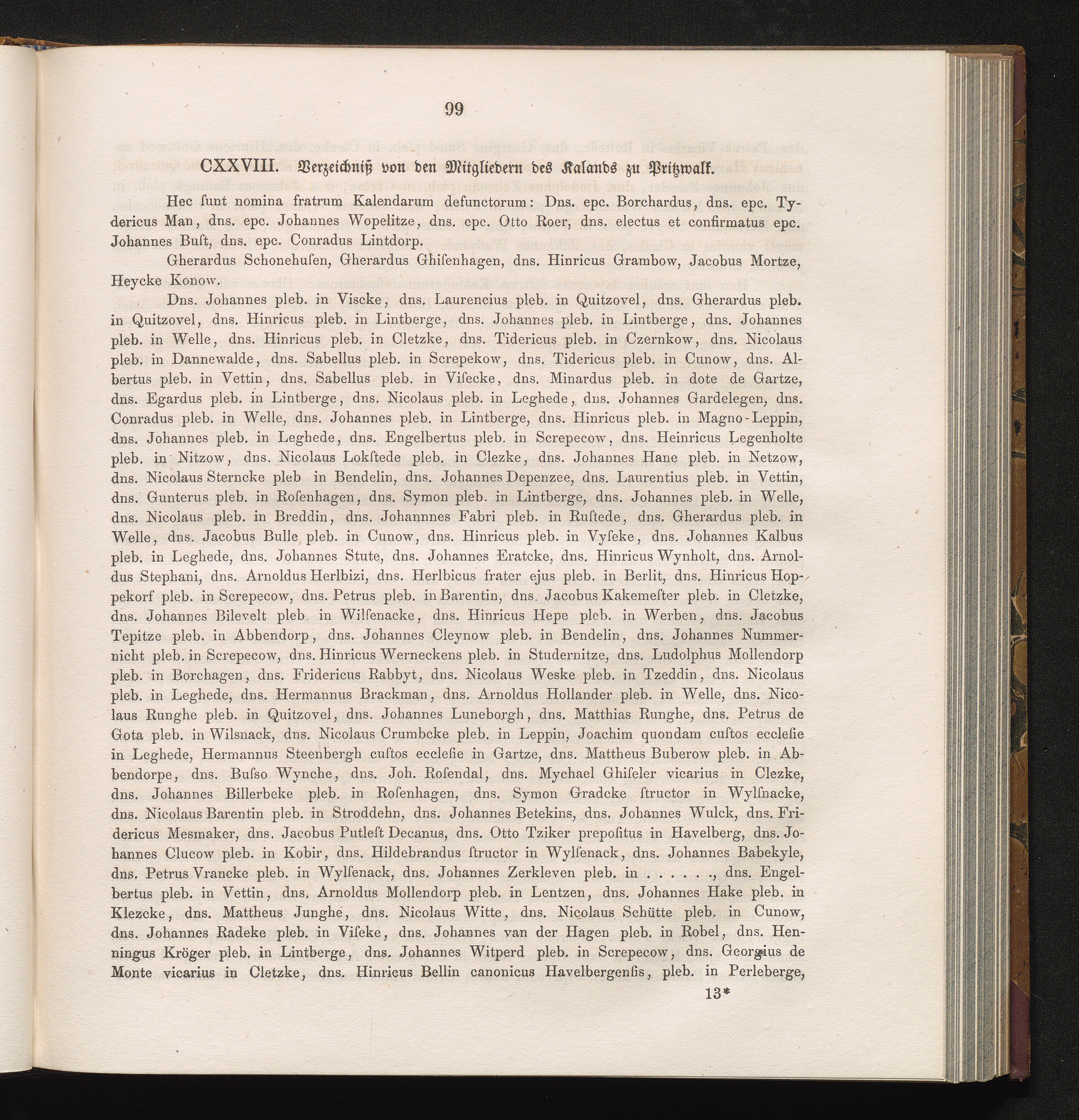 CXXVIII. Verzeichniß von den Mitgleidern des Kalands zu Pritzwalk.