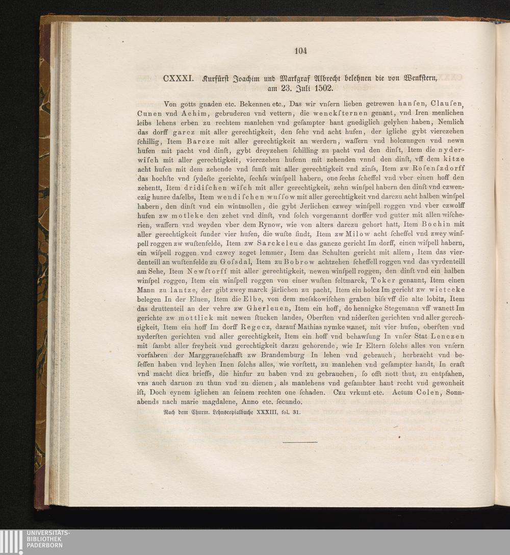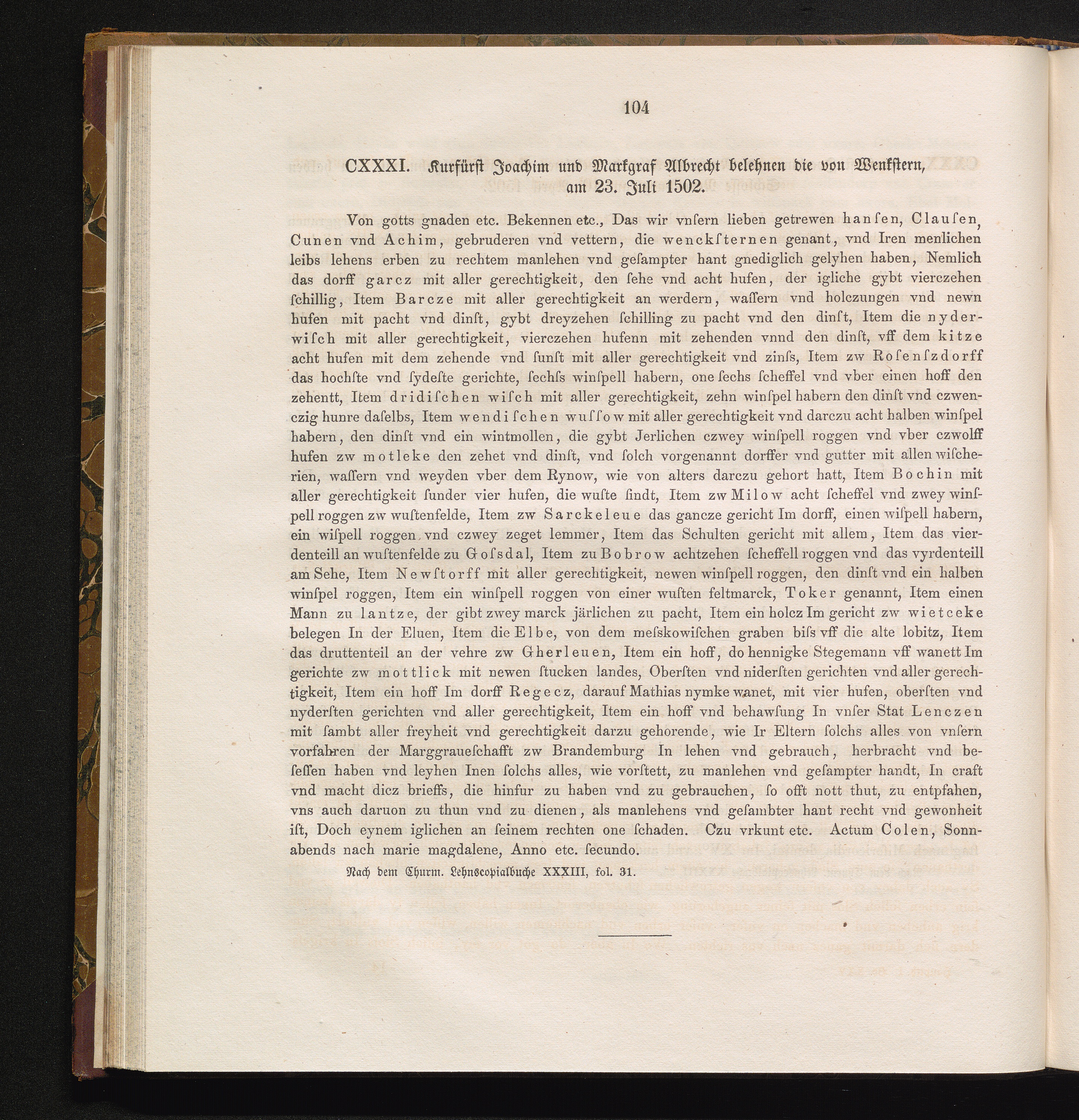 CXXXI. Kurfürst Joachim und Markgraf Albrecht belehnen die von Wenkstern, am 23.[...]