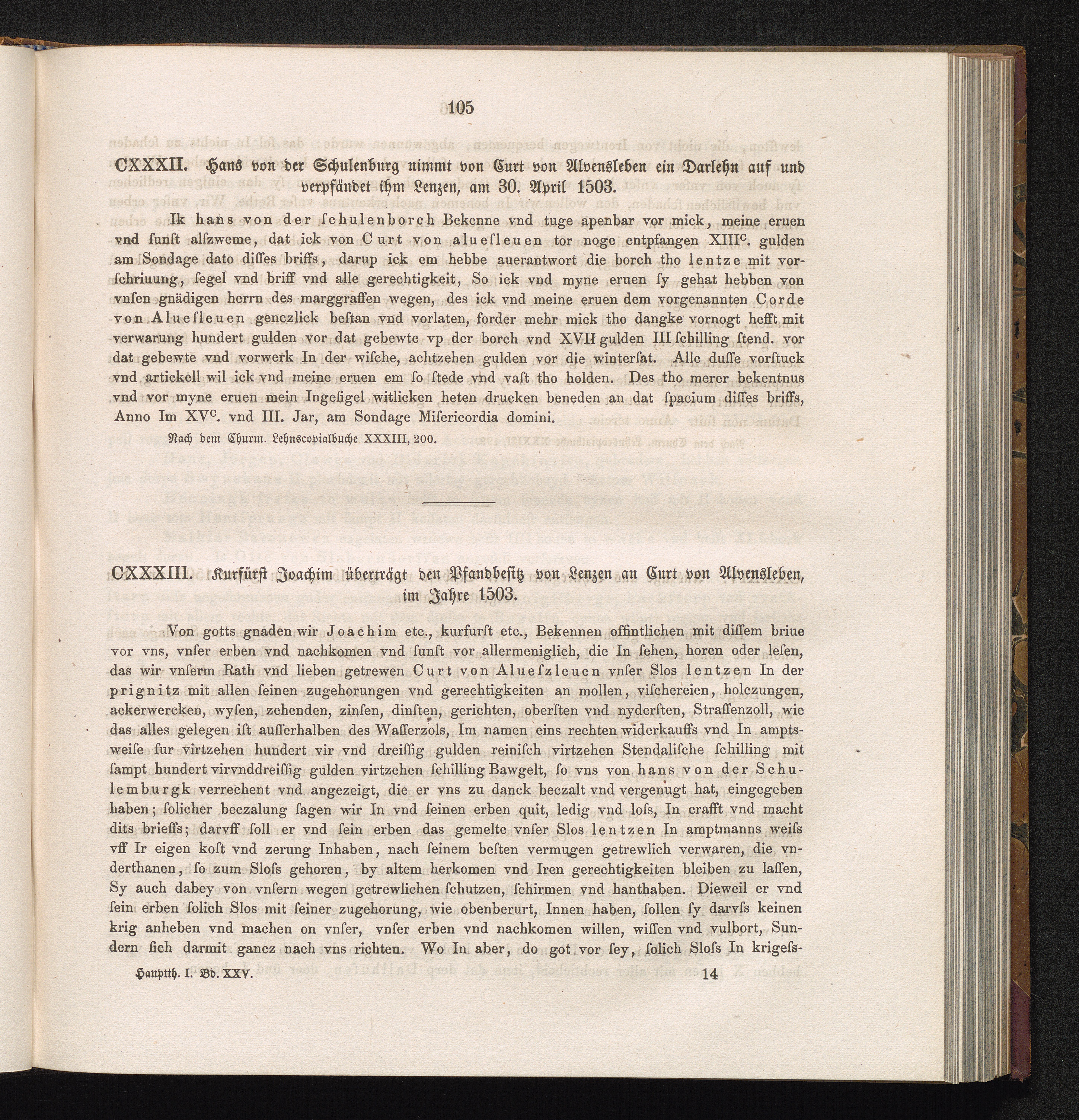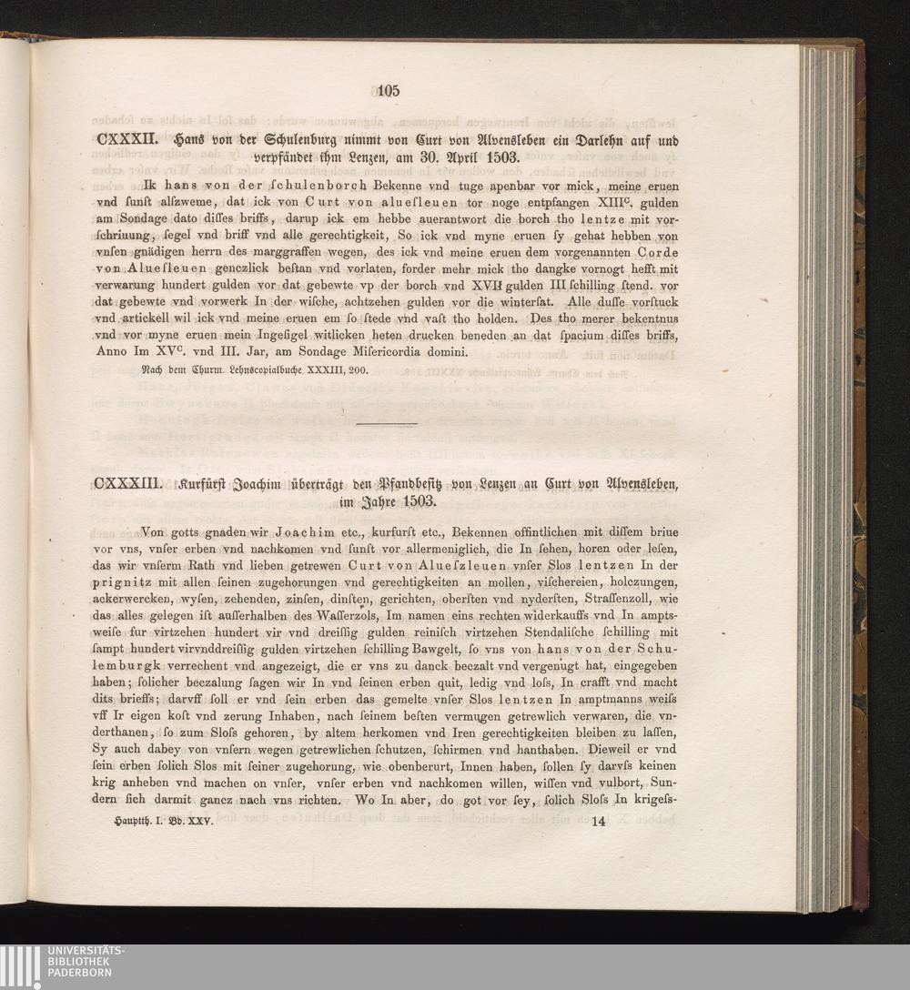 CXXXII. Hans von der Schulenburg nimmt von Curt von Alvensleben ein Darlehn auf und[...]