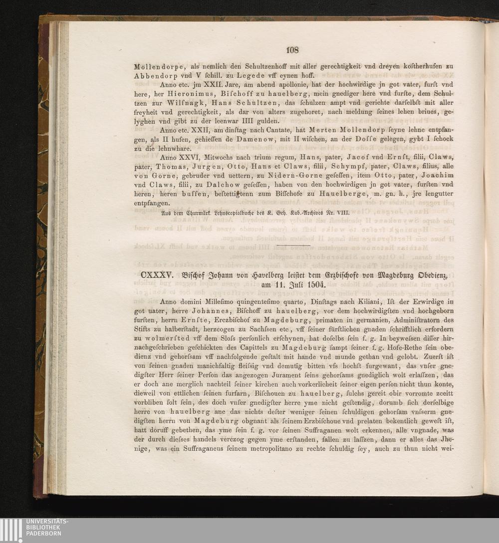 CXXXV. Bischof Johann von Havelberg leistet dem Erzbischofe von Magdeburg Obedienz,[...]
