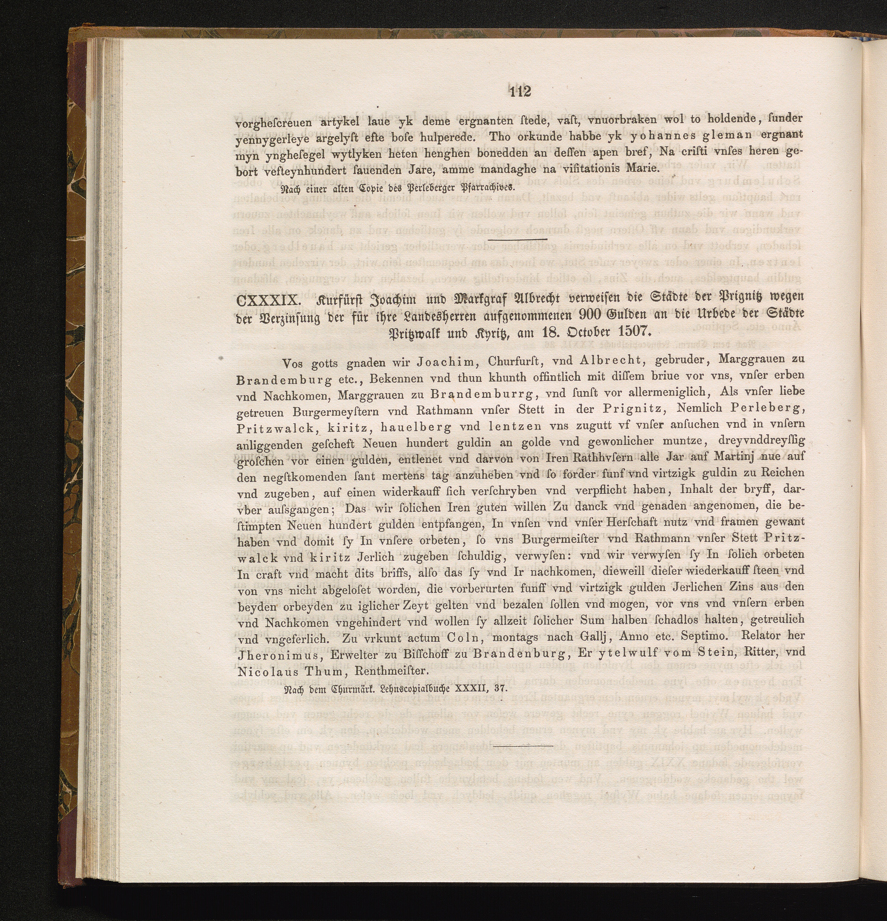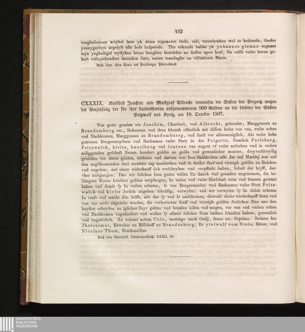 CXXXIX. Kurfürst Joachim und Markgraf Albrecht verweisen die Städte der Prignitz[...]