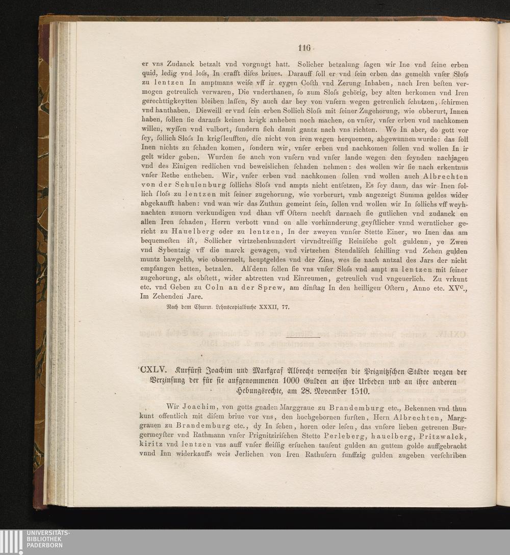 CXLV. Kurfürst Joachim und Markgraf Albrecht verweisen die Prignitzschen Städte wegen[...]