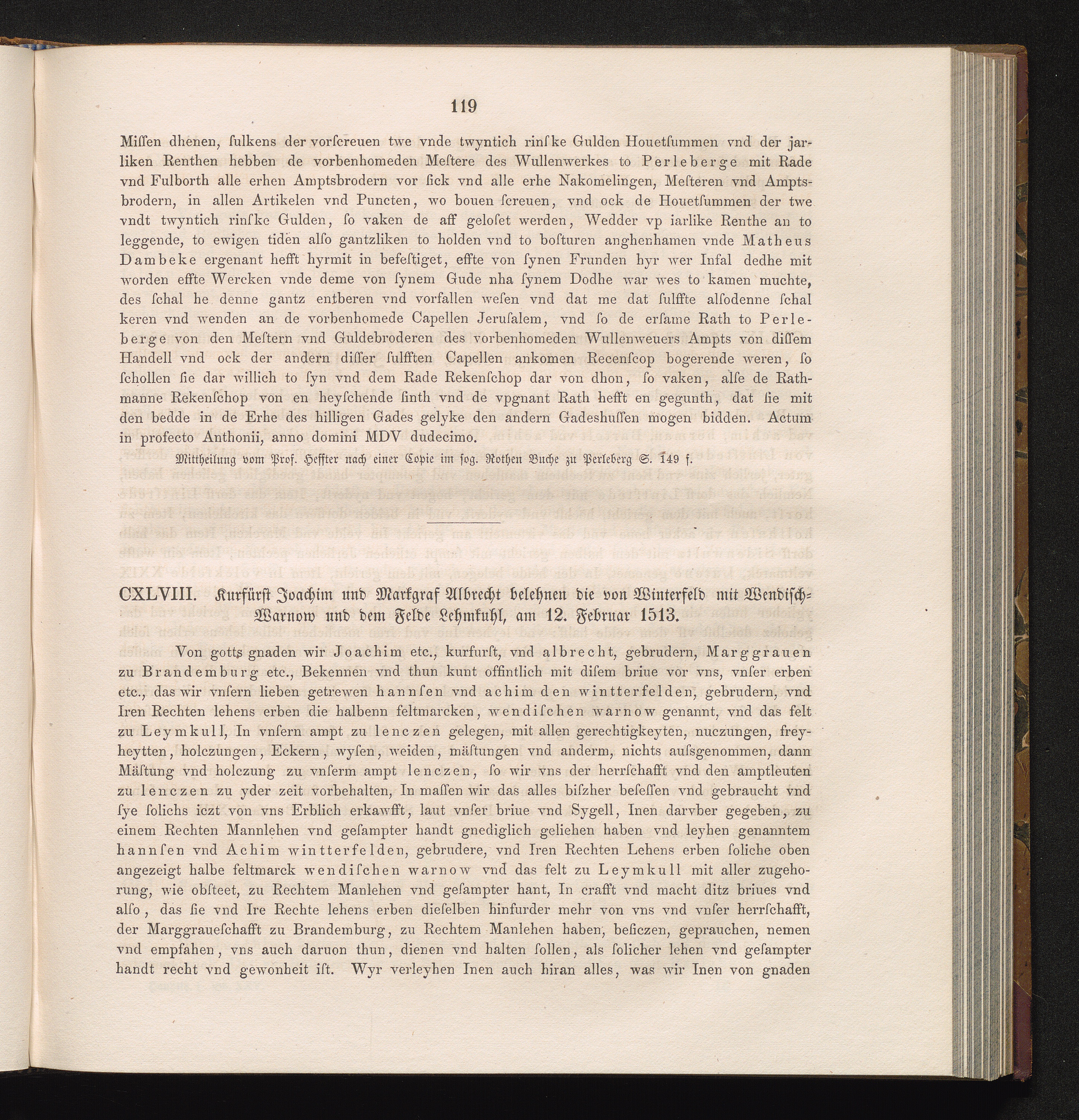 CXLVIII. Kurfürst Joachim und Markgraf Albrecht belehnen die von Winterfeld mit Wendisch-Warnow[...]