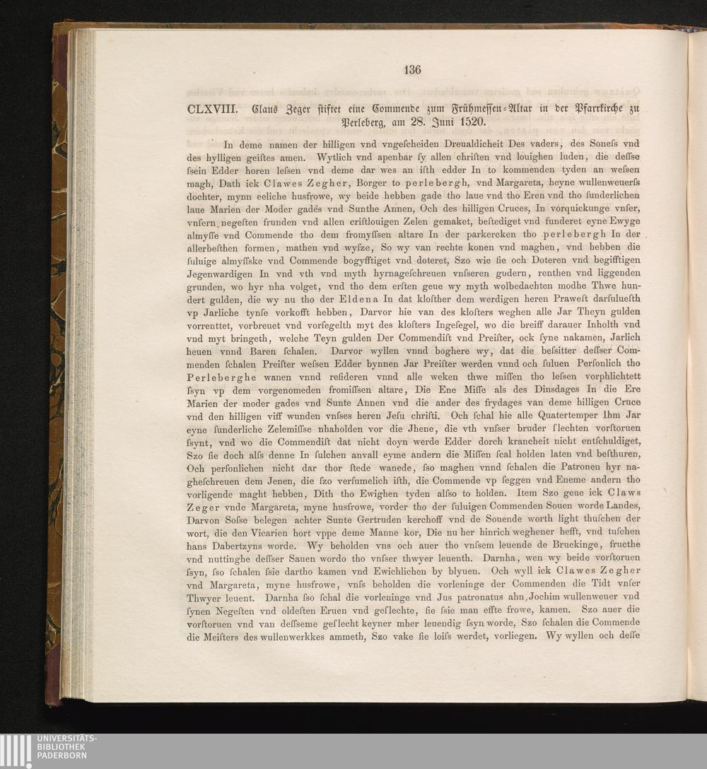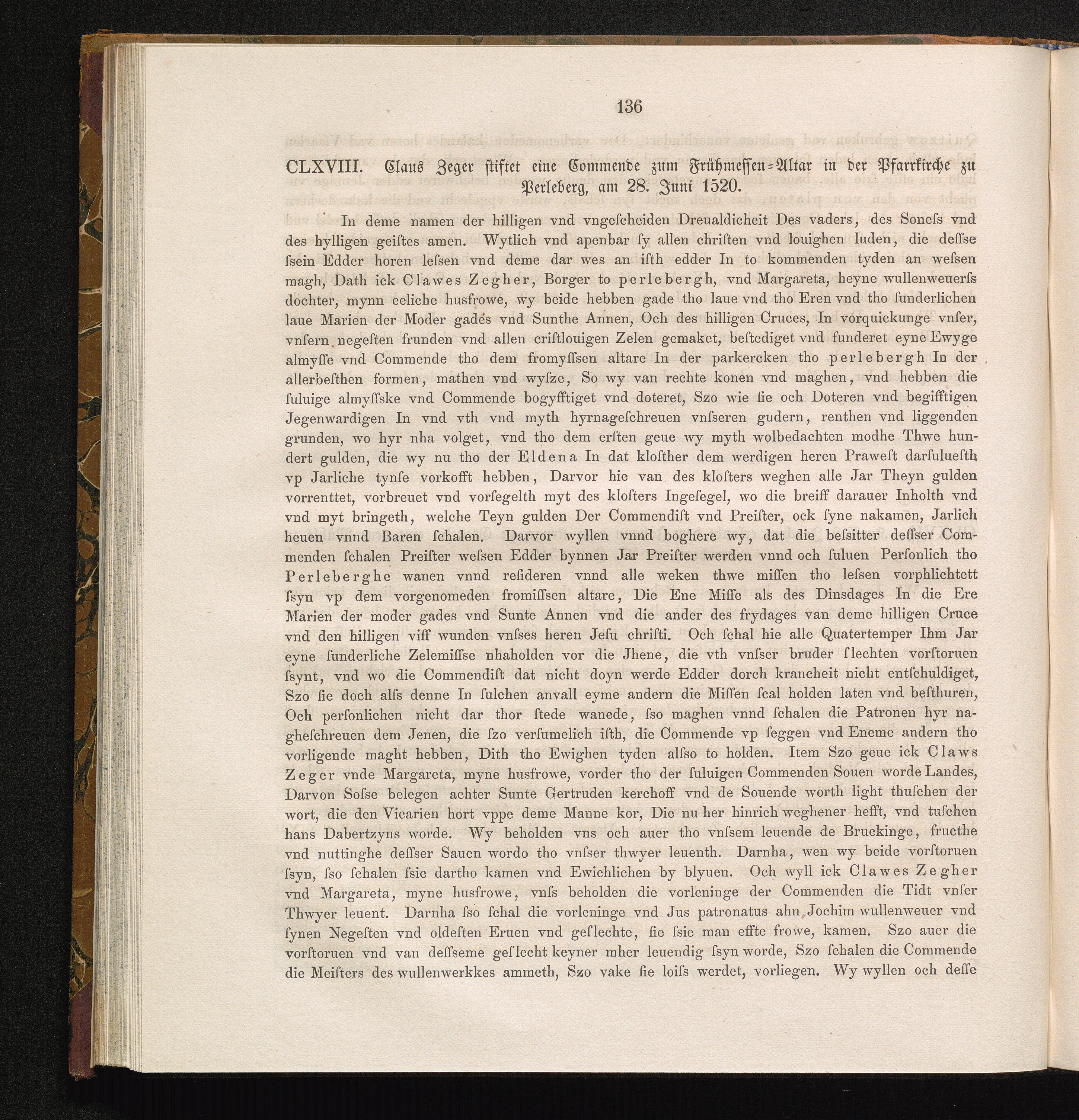CLXVIII. Claus Zeger stiftet eine Commende zum Frühmessen-Altar in der Pfarrkirche[...]