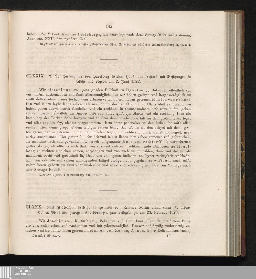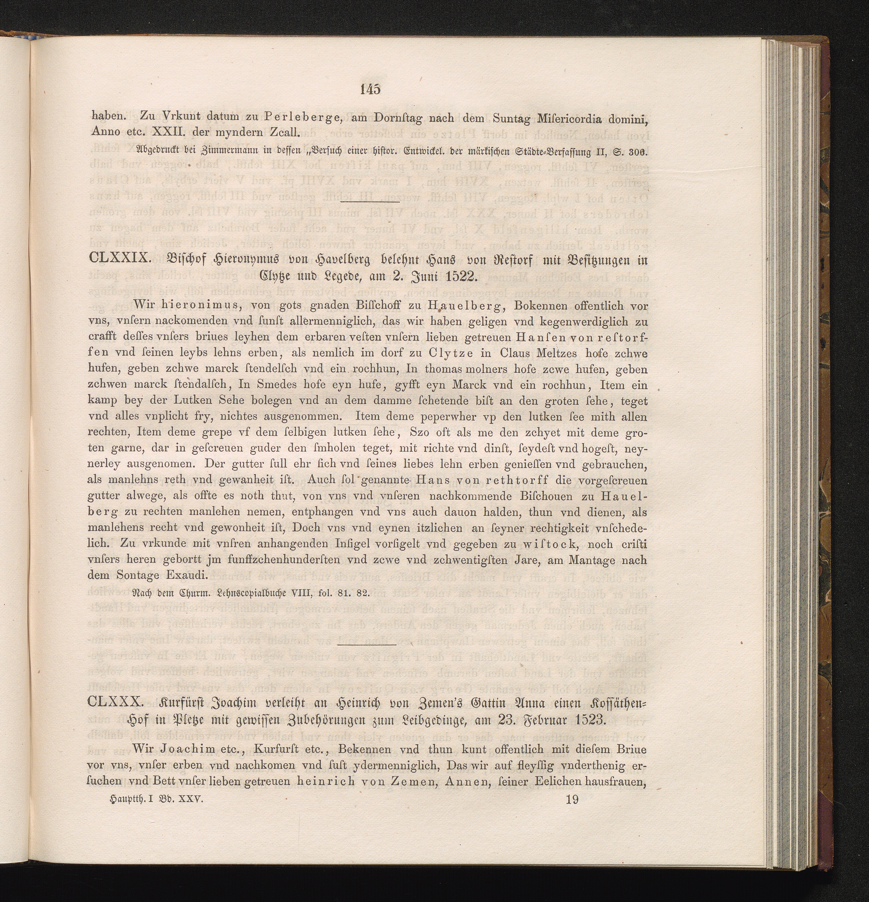 CLXXIX. Bischof Hieronymus von Havelberg belehnt Hans von Restorf mit Besitzungen[...]