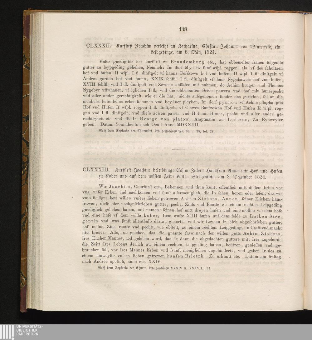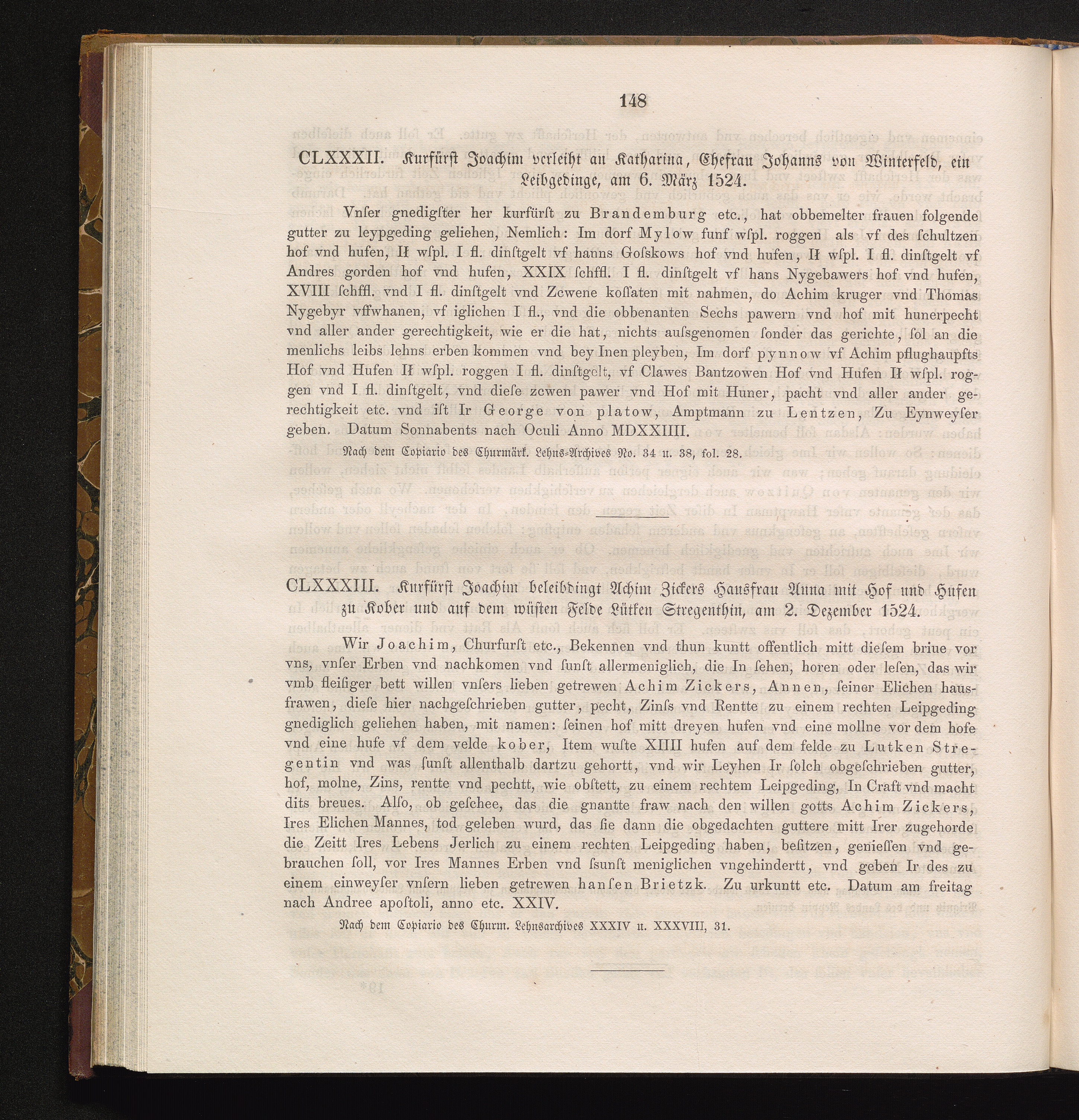 CLXXXII. Kurfürst Joachim verleiht an Katharina, Ehefrau Johanns von Winterfeld,[...]