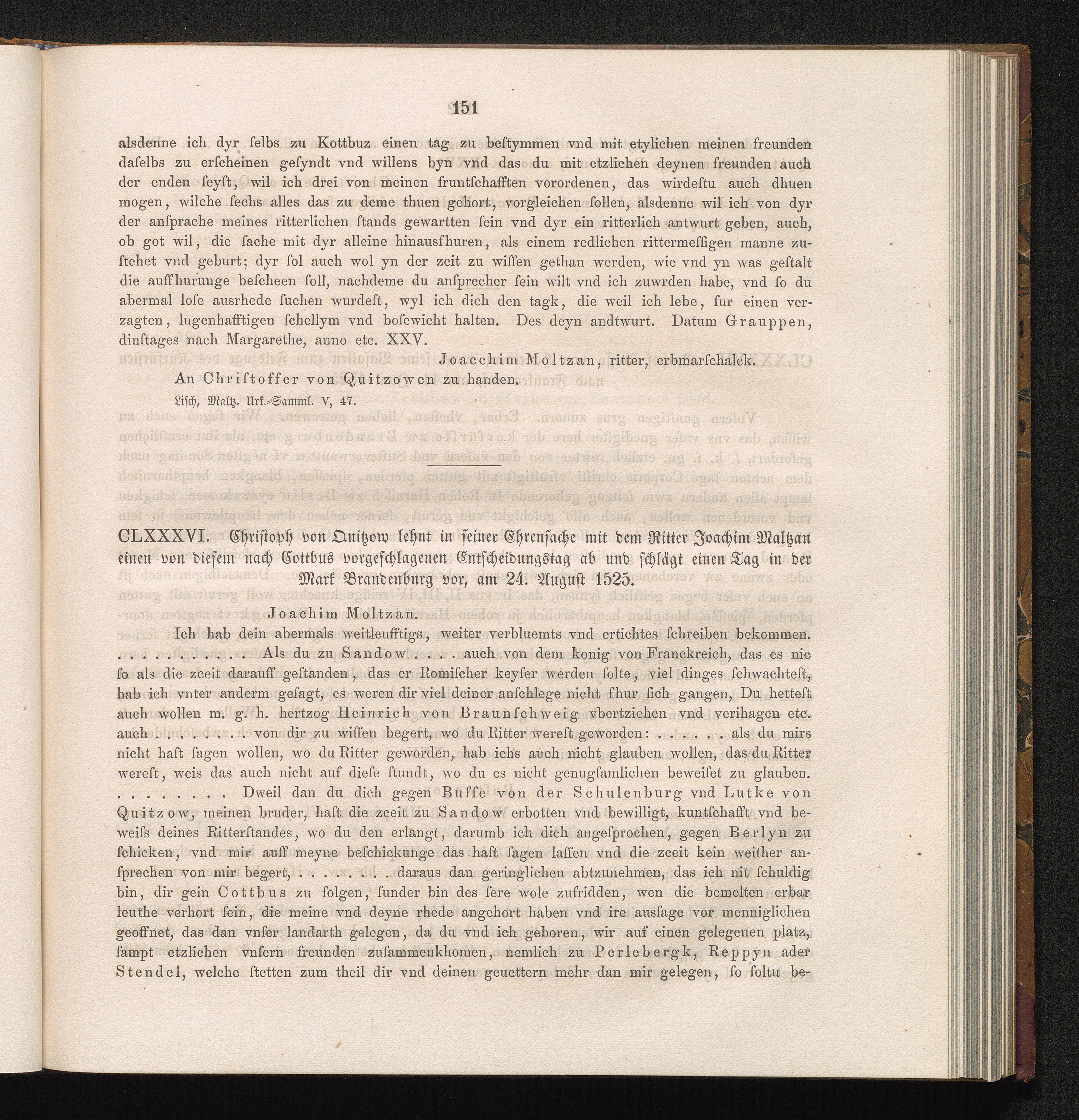 CLXXXVI. Christoph von Quitzow lehnt in seiner Ehrensache mit dem Ritter Joachim[...]
