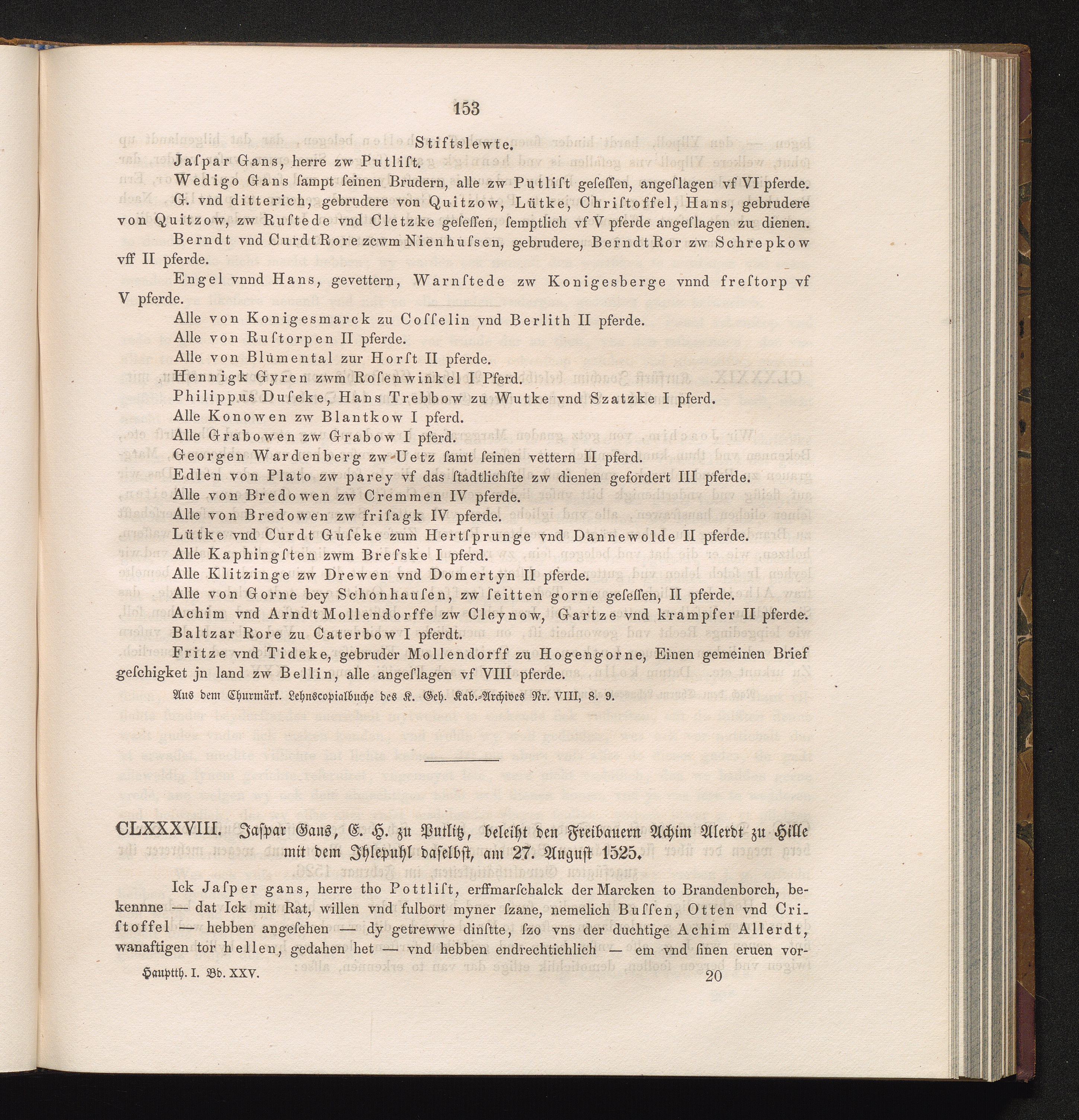 CLXXXVIII. Jaspar Gans, E. H. zu Putlitz, beleiht den Freibauern Achim Alerdt zu[...]