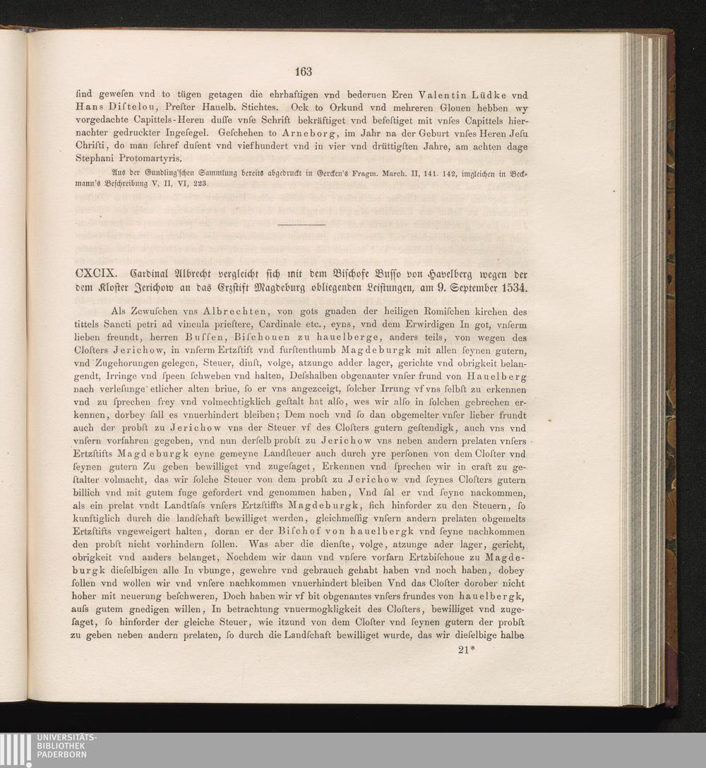 CXCIX. Cardinal Albrecht vergleicht sich mit dem Bischofe Busso von Havelberg wegen[...]