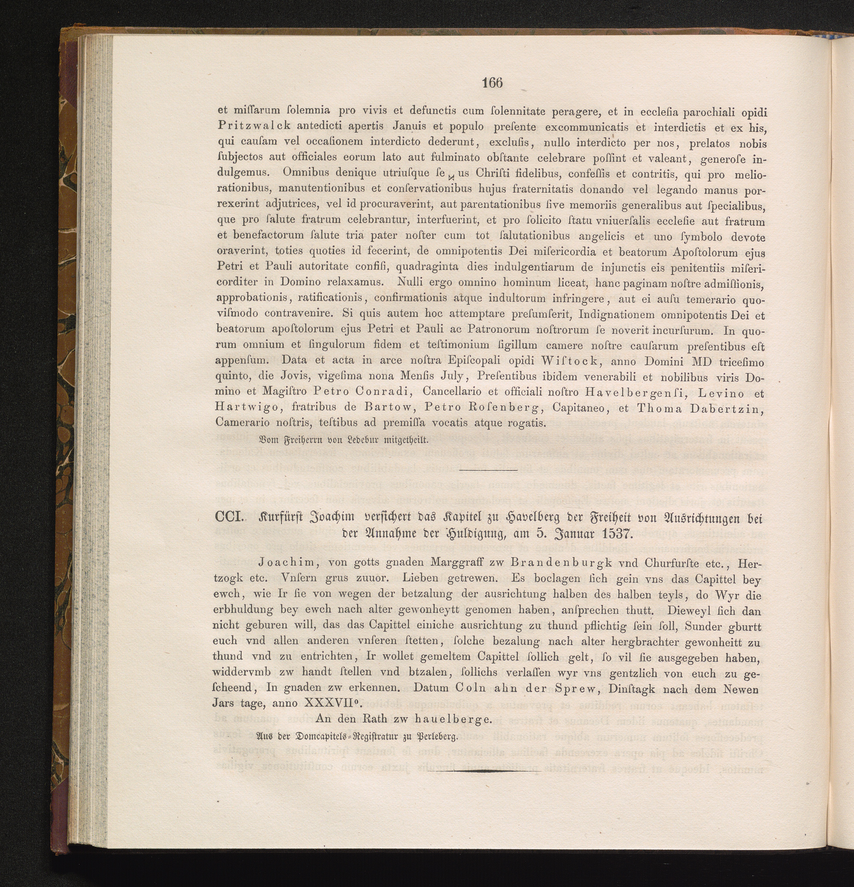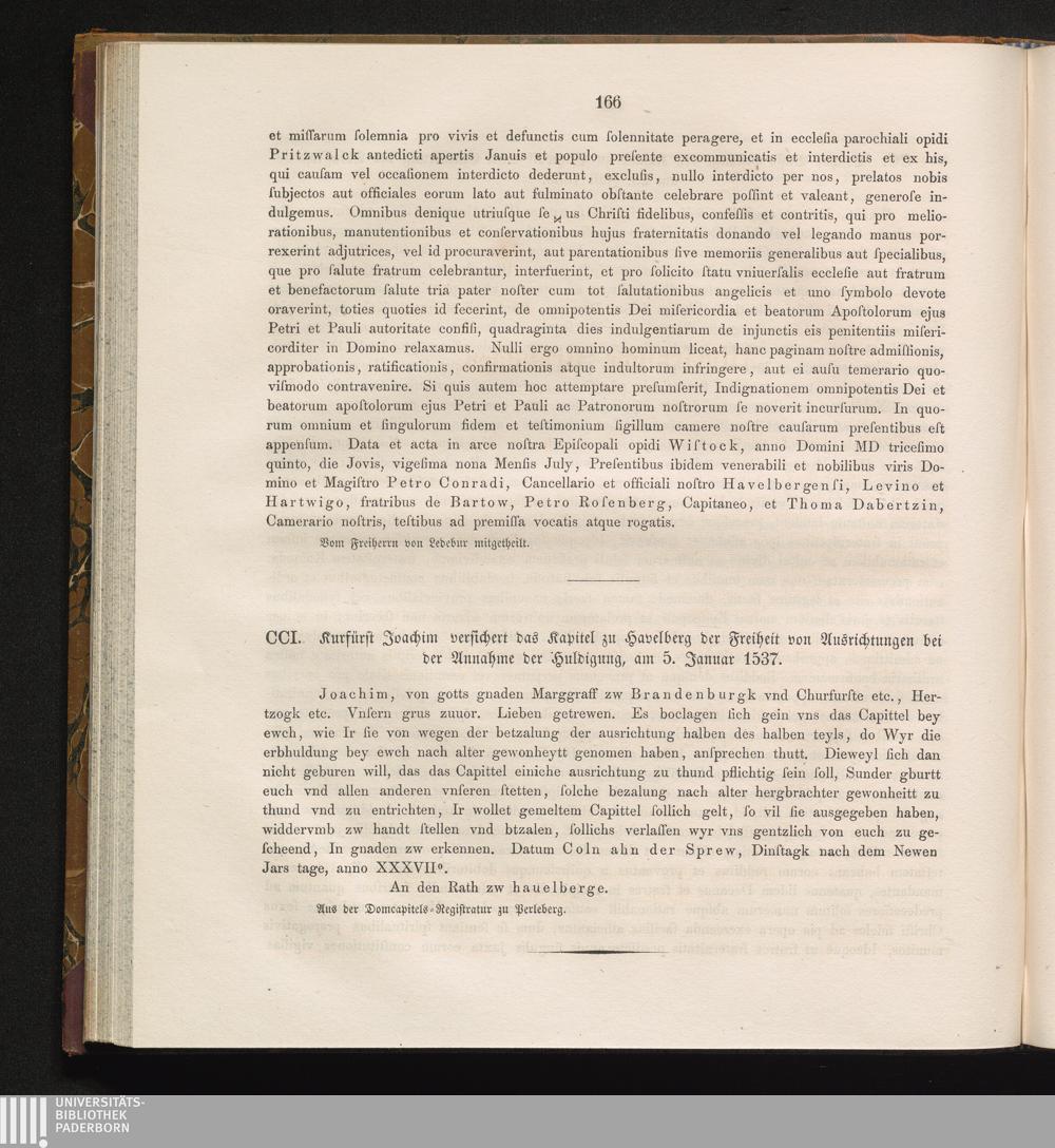 CCI. Kurfürst Joachim versichert das Kapitel zu Havelberg der Freiheit von Ausrichtungen[...]
