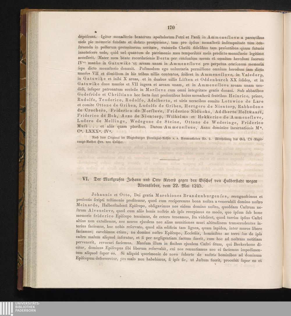 VI. Der Markgrafen Johann und Otto Revers gegen den Bischof von Halberstadt wegen[...]