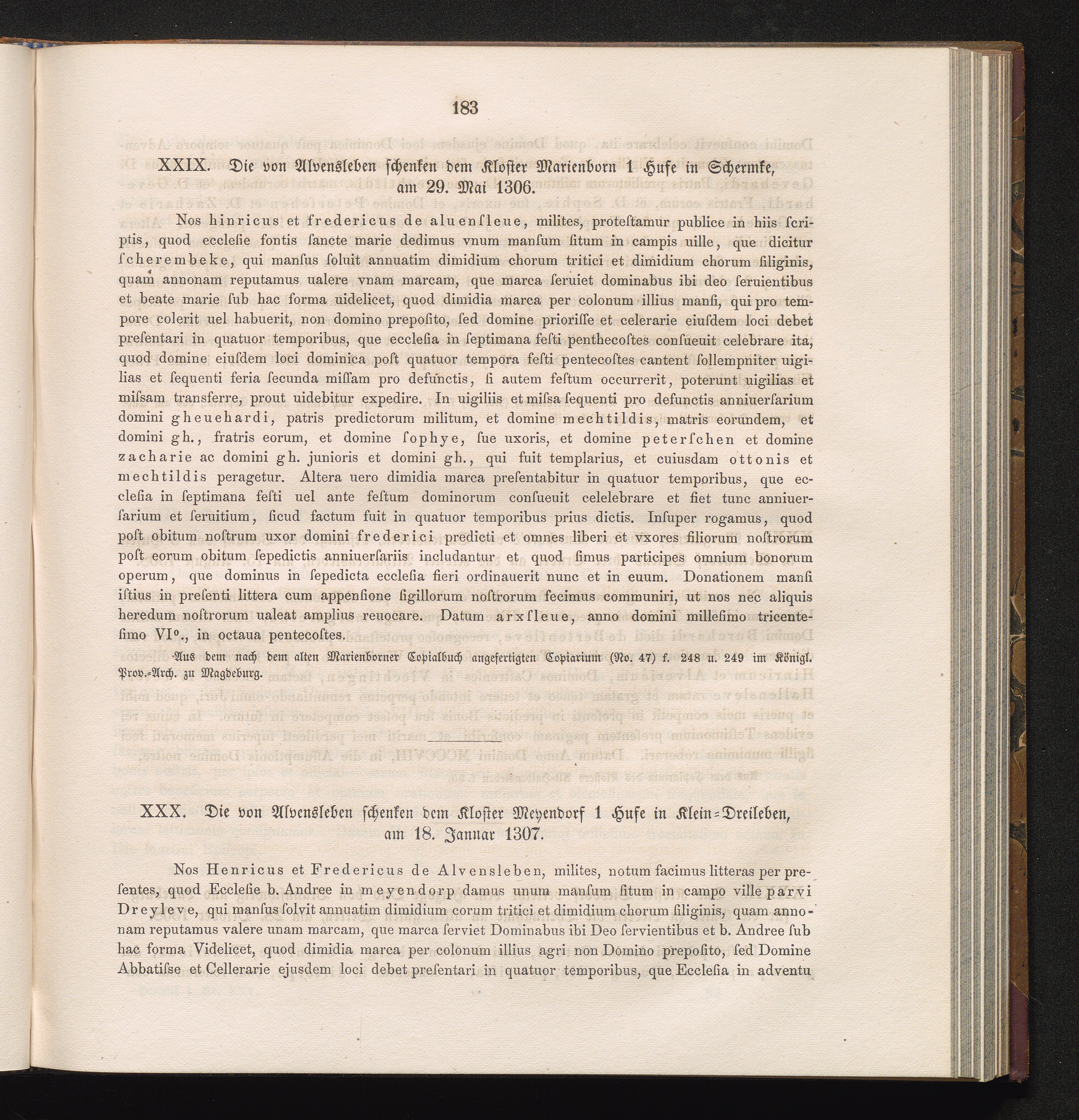 XXIX. Die von Alvensleben schenken dem Kloster Marienborn 1 Hufe in Schermke, am[...]
