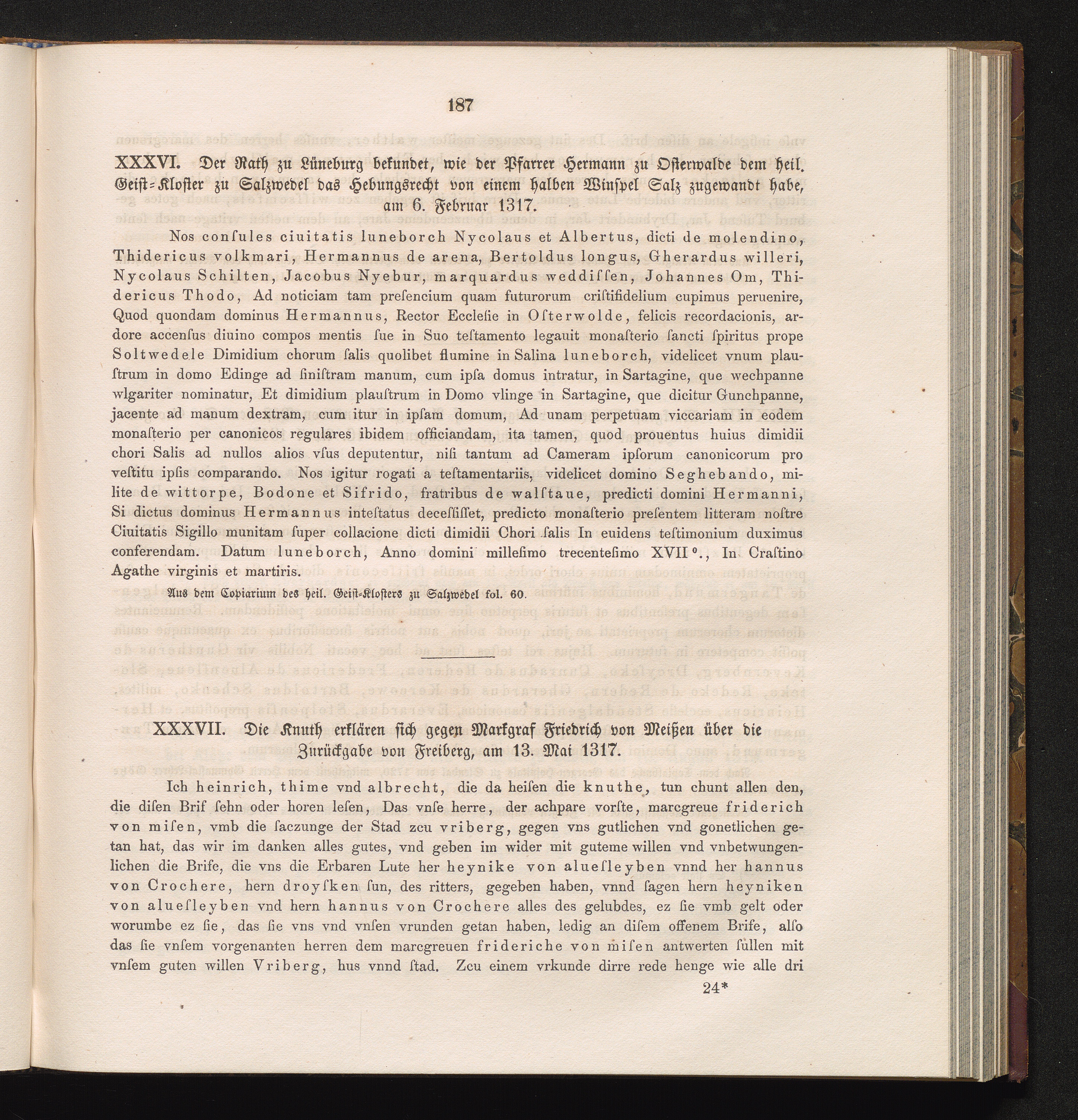 XXXVI. Der Rath zu Lüneburg bekundet, wie der Pfarrer Hermann zu Osterwalde dem heil.[...]