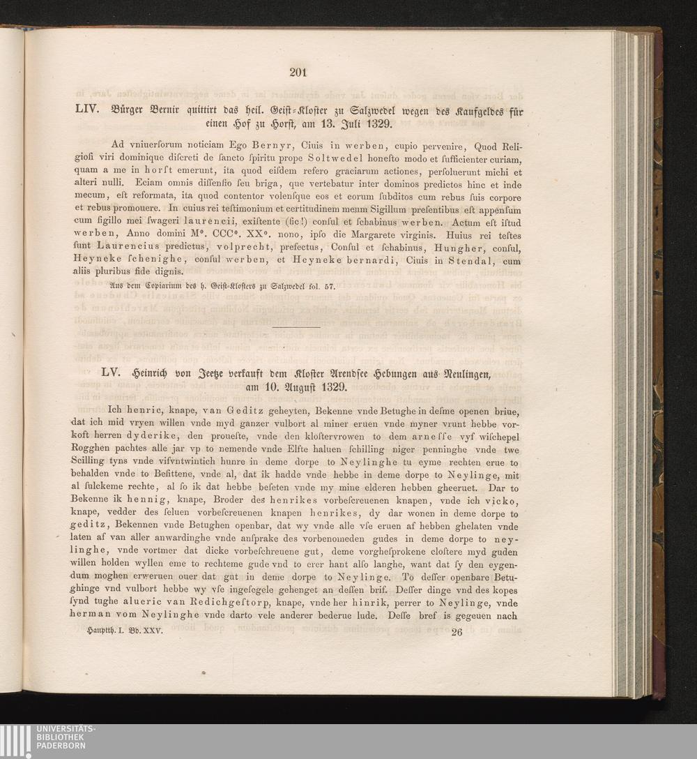 LIV. Bürger Bernir quittirt das heil. Geist-Kloster zu Salzwedel wegen des Kaufgeldes[...]