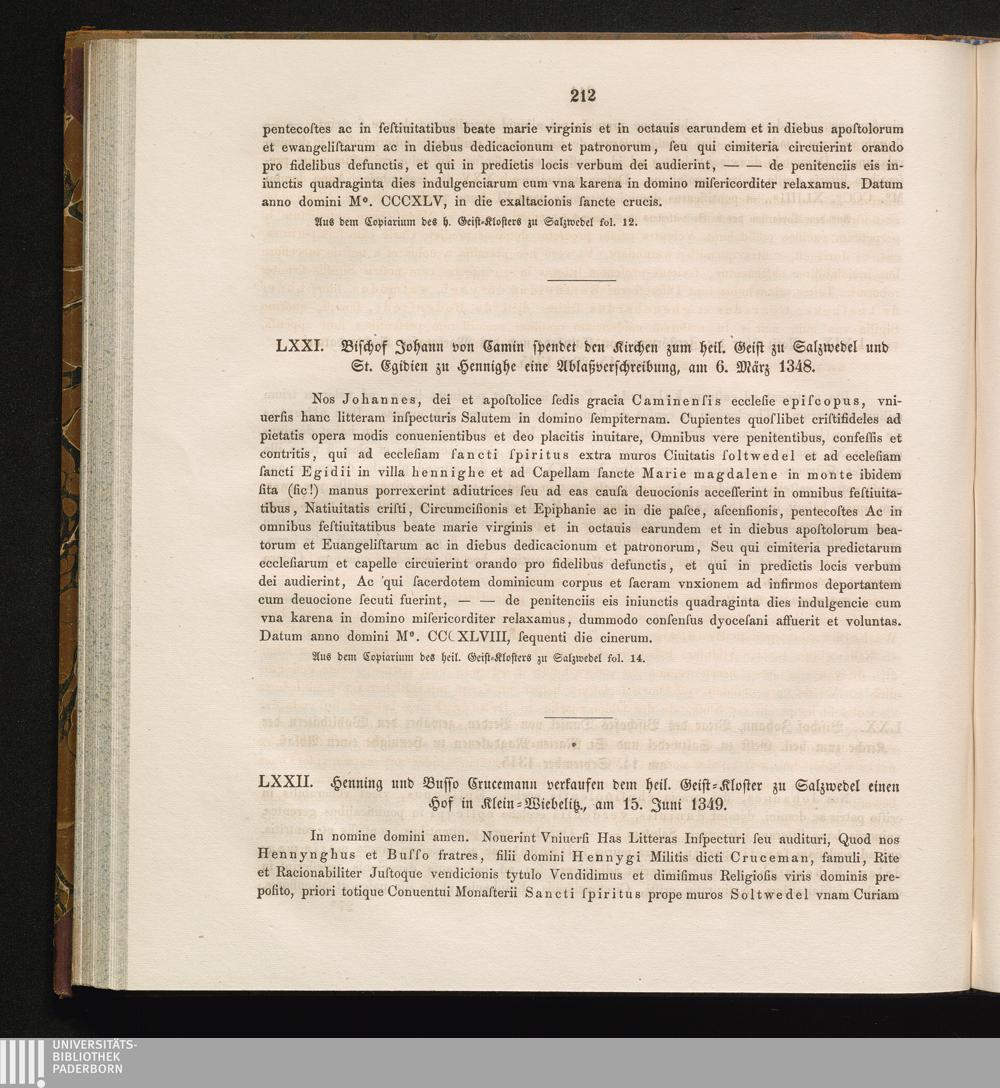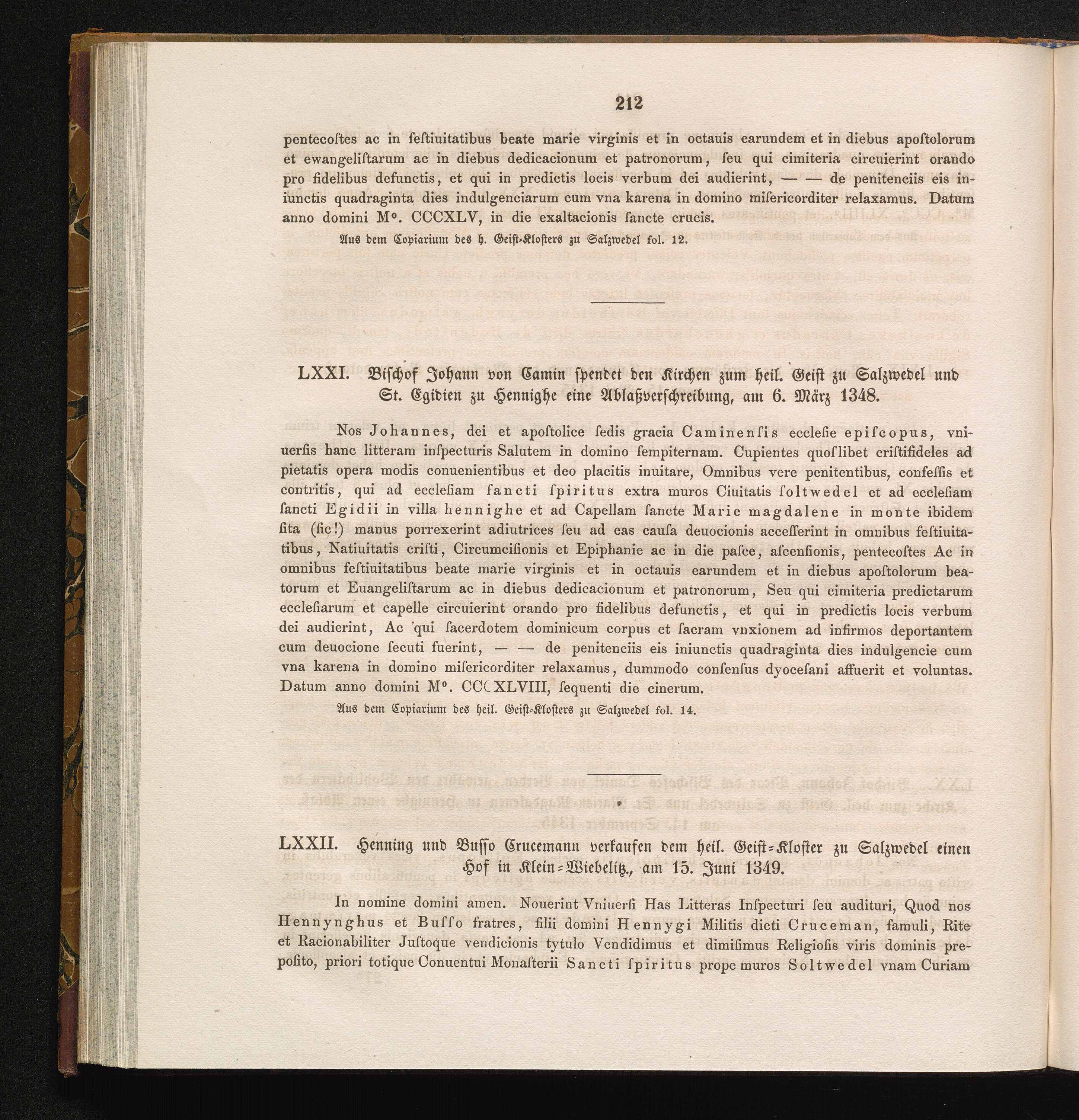 LXXI. Bischof Johann von Camin spendet den Kirchen zum heil. Geist zu Salzwedel und[...]