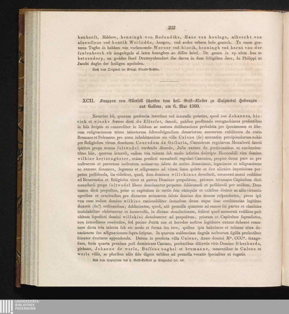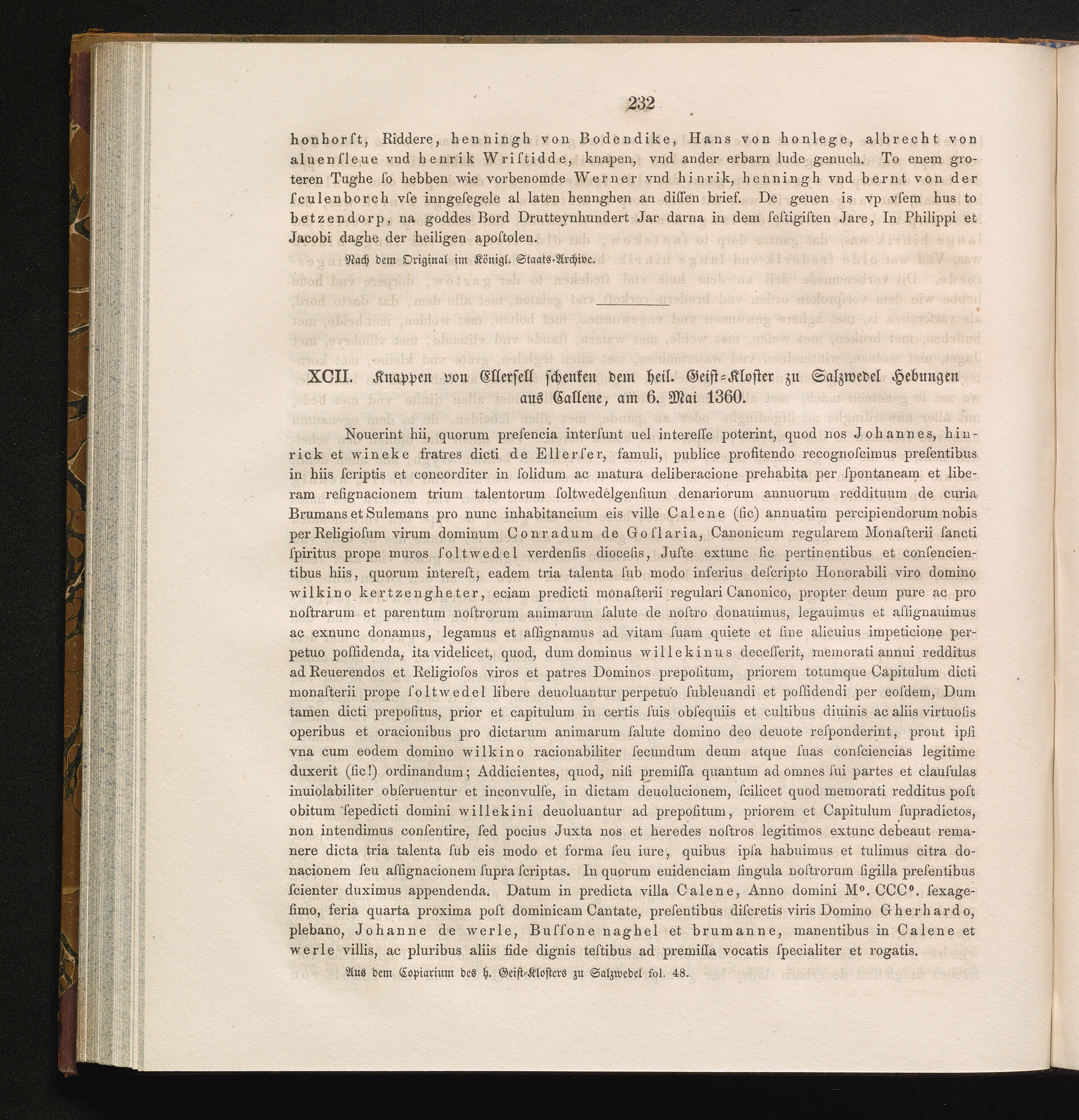 XCII. Knappen von Ellersell schenken dem heil. Geist-Kloster zu Salzwedel Hebungen[...]