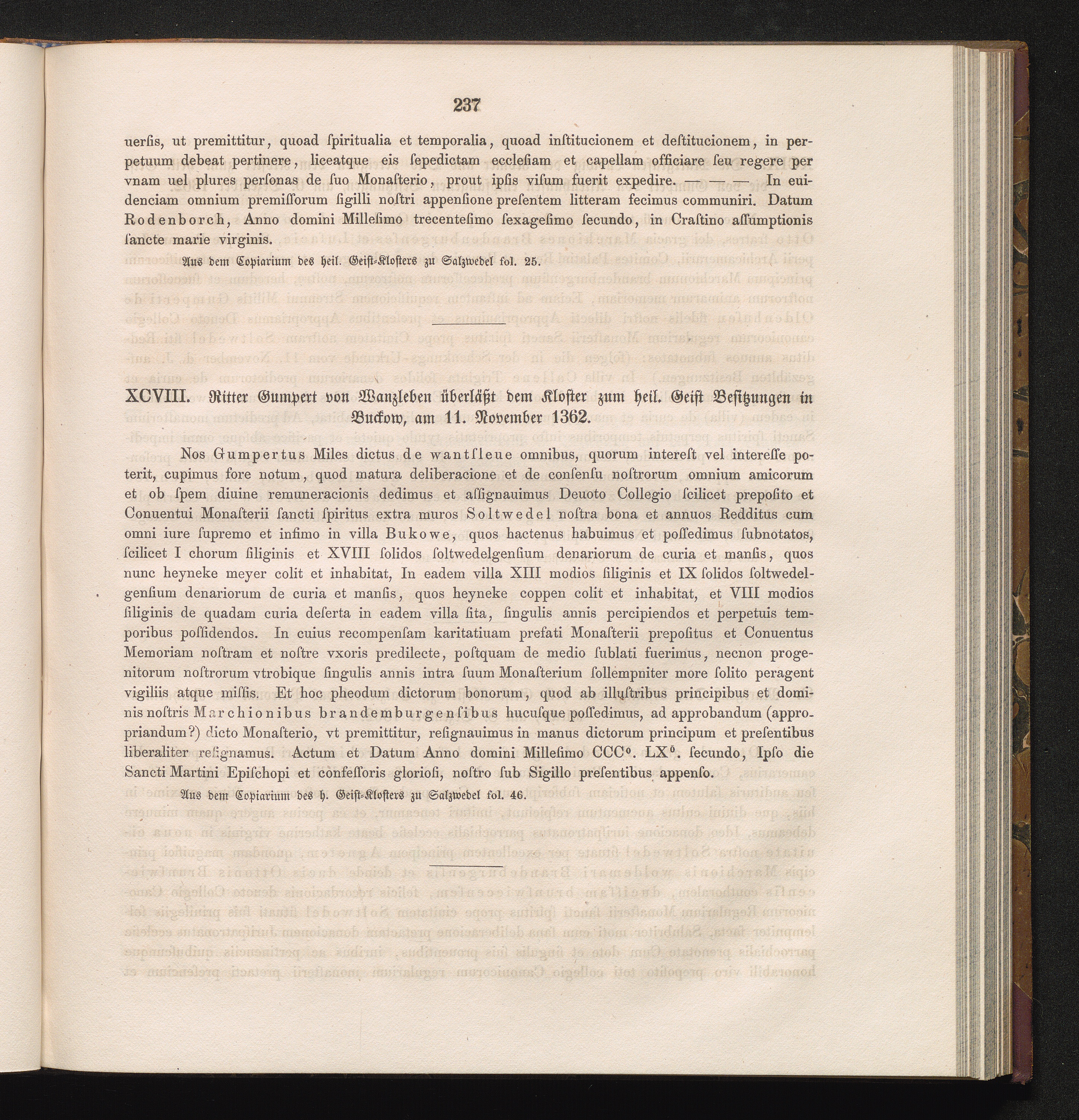 XCVIII. Ritter Gumpert von Wanzleben überläßt dem Kloster zum heil. Geist Besitzungen[...]
