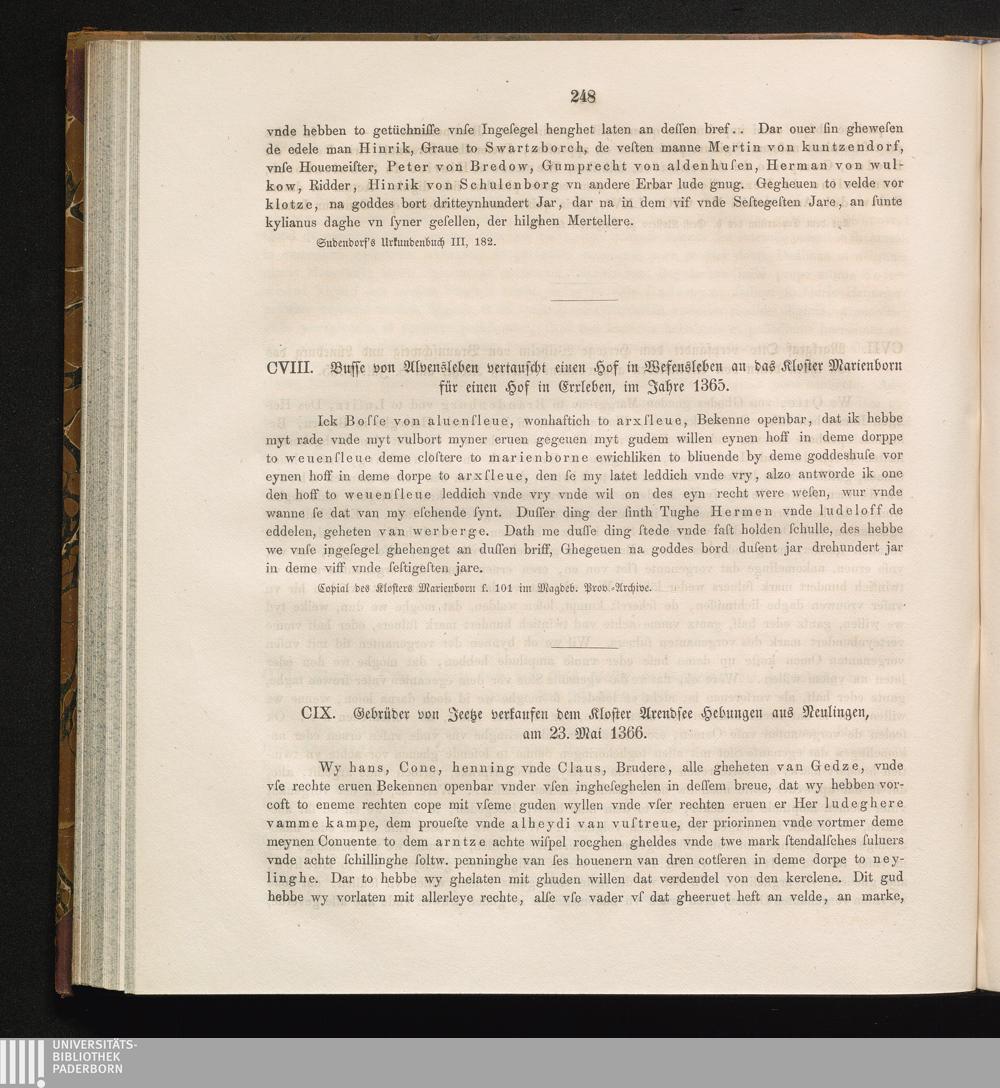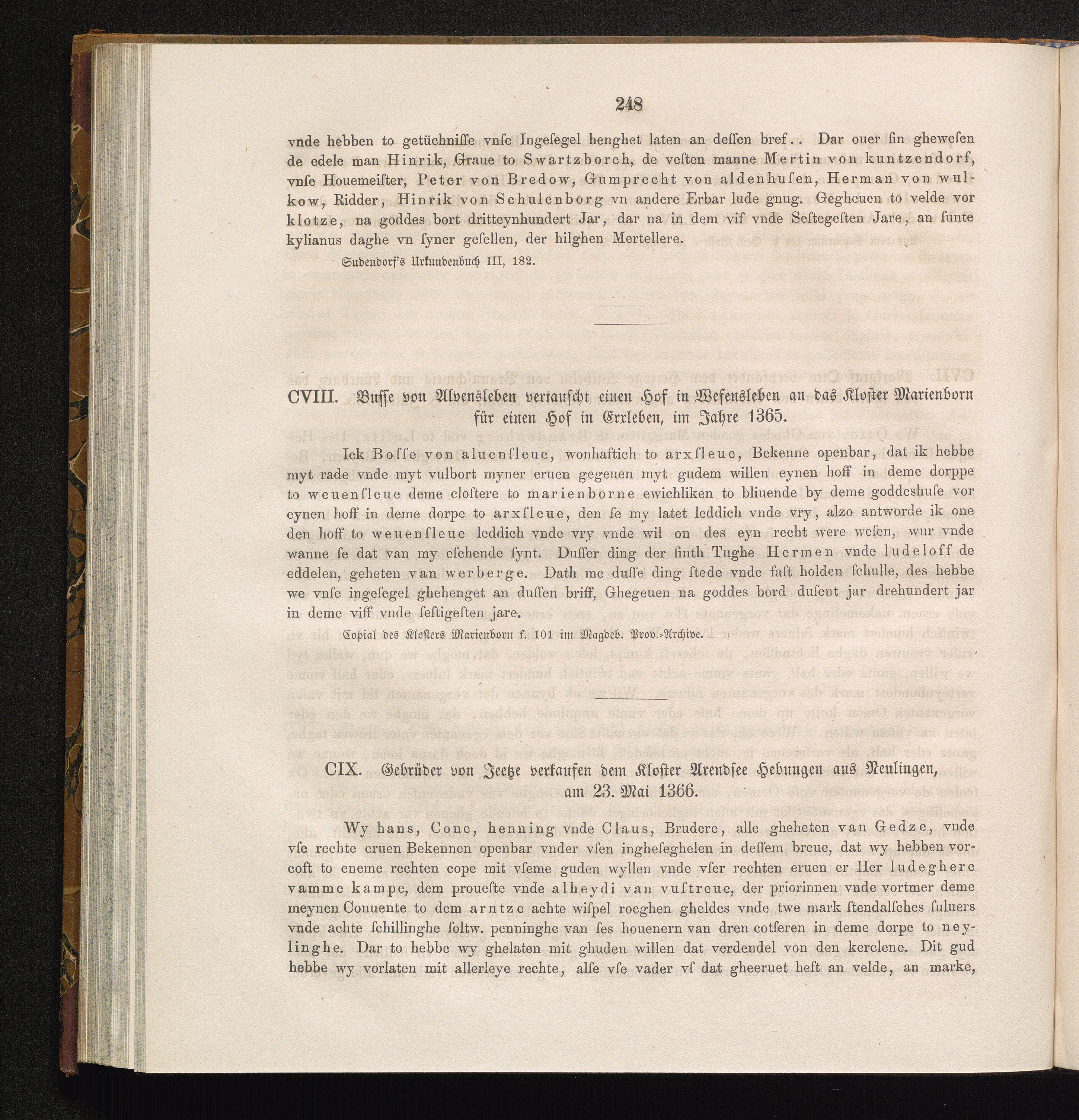 CVIII. Busse von Alvensleben vertauscht einen Hof in Wesensleben an das Kloster Marienborn[...]