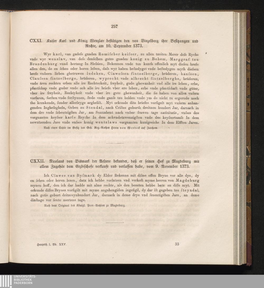 CXXI. Kaiser Karl und König Wenzlav bestätigen den von Vinzelberg ihre Besitzungen[...]