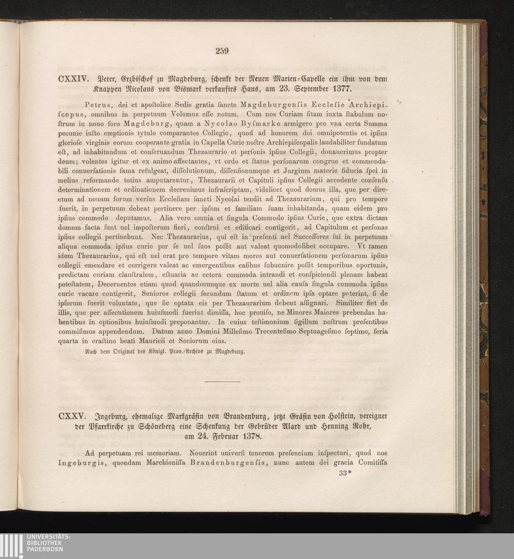CXXIV. Peter, Erzbischof zu Magdeburg, schenkt der Neuen Marien-Capelle ein ihm von[...]