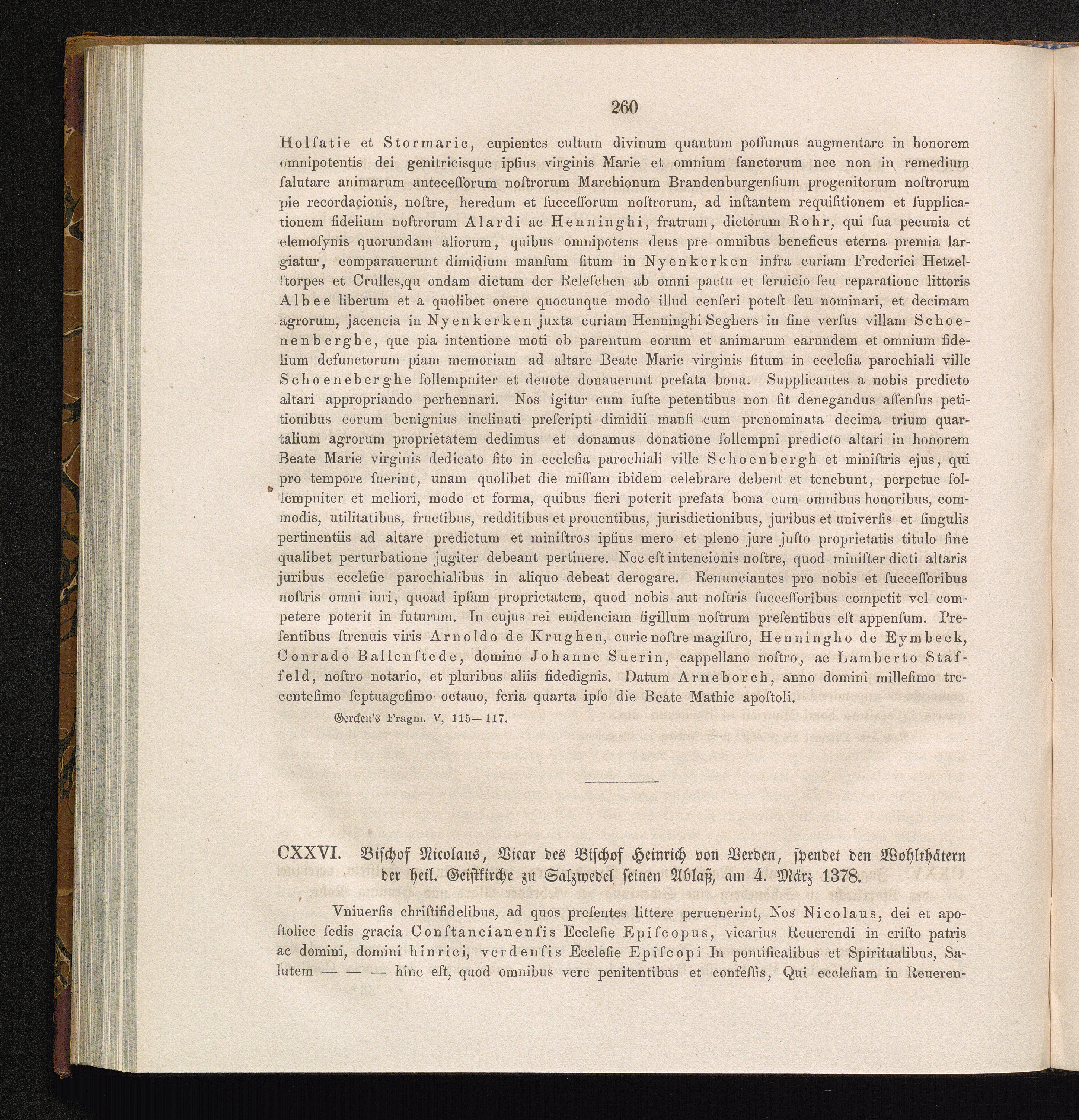 CXXVI. Bischof Nicolaus, Vicar des Bischof Heinrich von Verden, spendet den Wohlthätern[...]