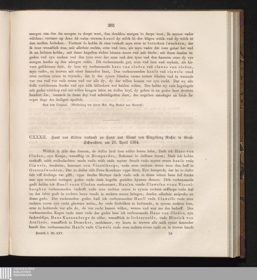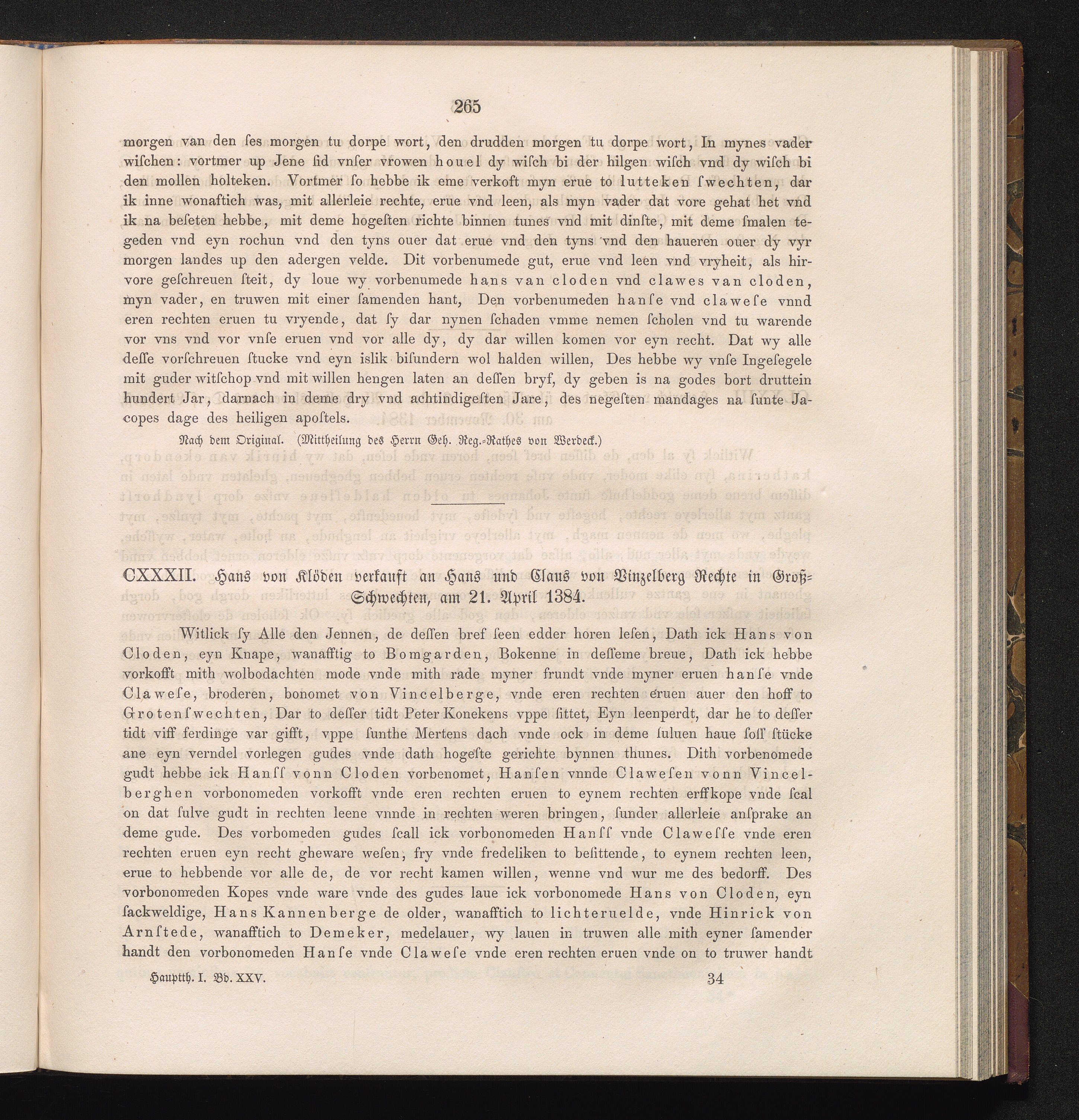 CXXXII. Hans von Klöden verkauft an Hans und Claus von Vinzelberg Rechte in Groß-Schwechten,[...]