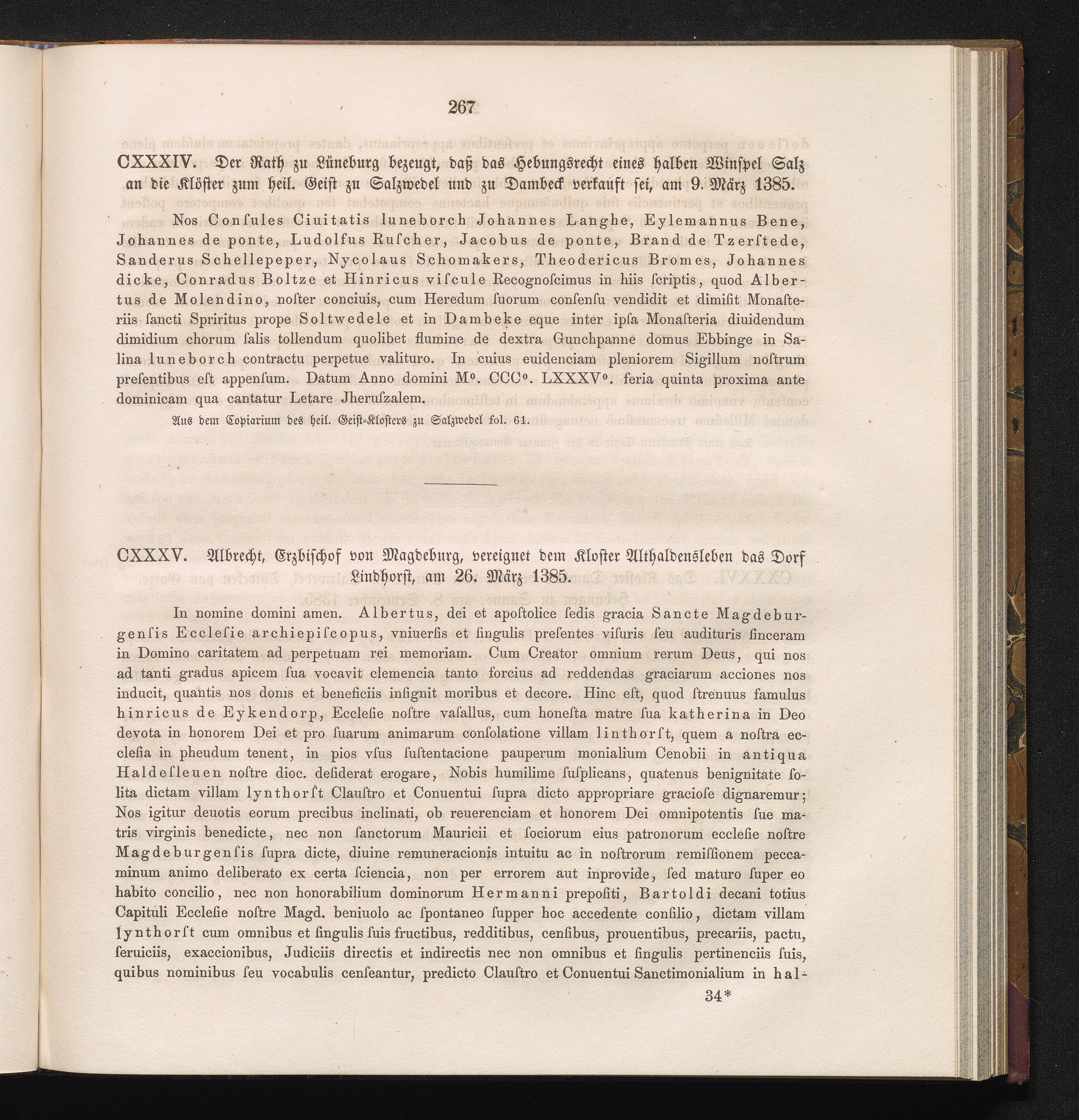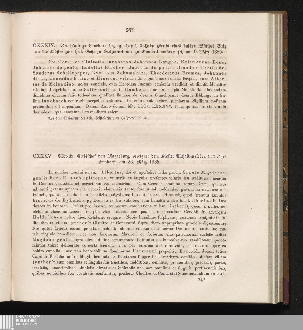 CXXXIV. Der Rath zu Lüneburg bezeugt, daß das Hebungsrecht eineshalben Winspel Salz[...]