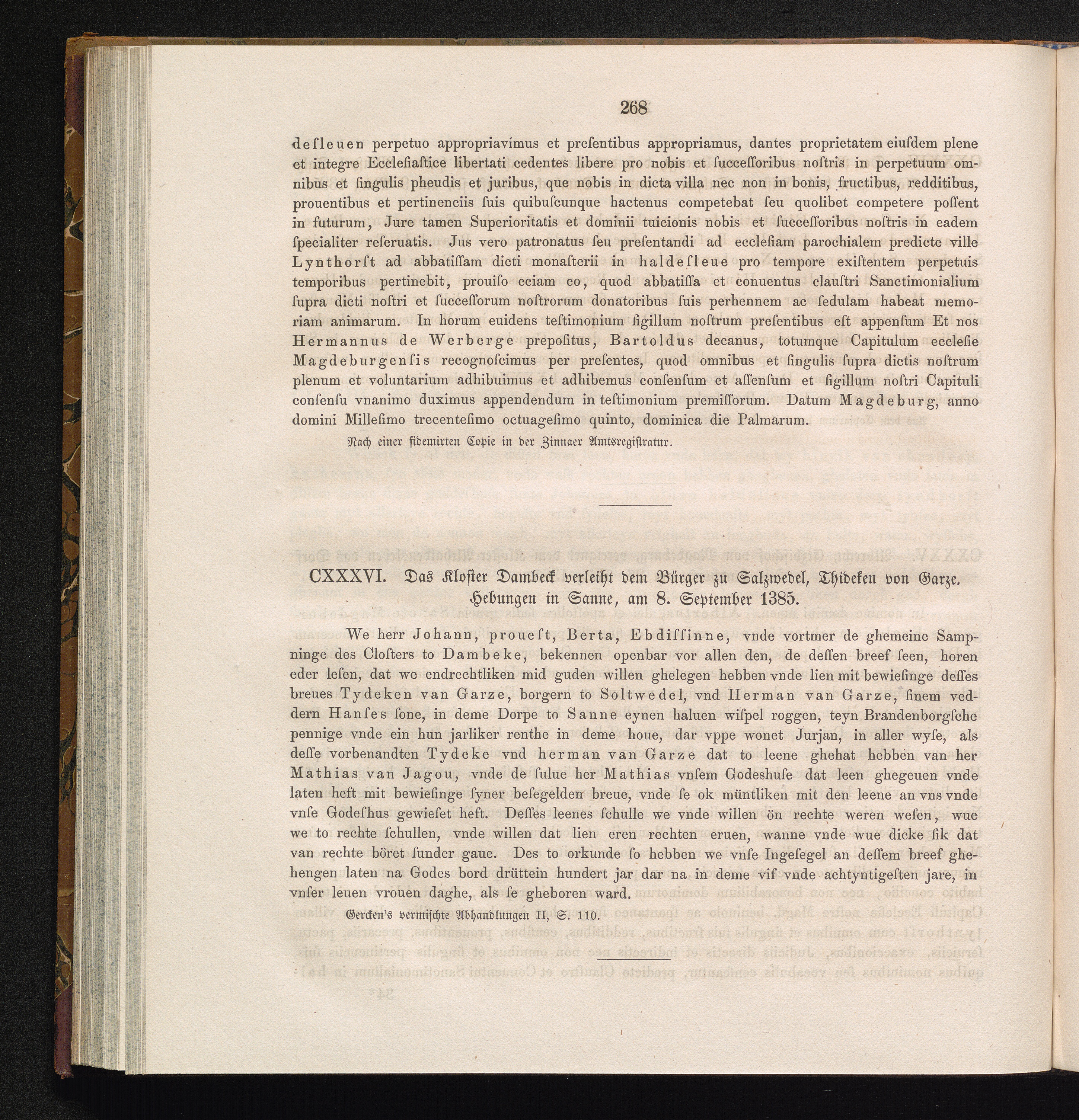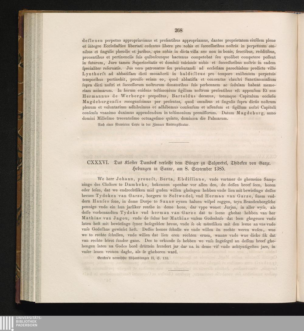 CXXXVI. Das Kloster Dambeck verleiht dem Bürger zu Salzwedel, Thideken von Garze,[...]