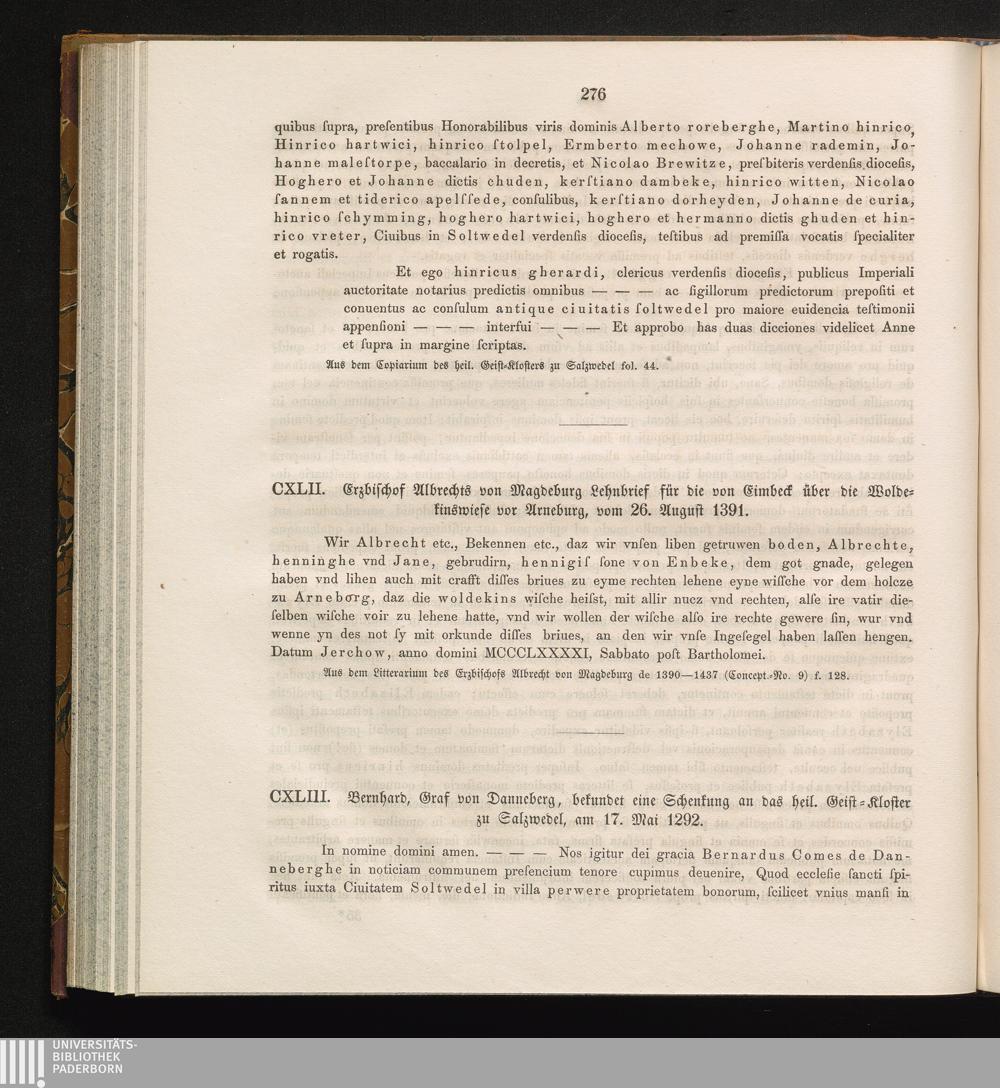 CXLII. Erzbischof Albrechts von Magdeburg Lehnbrief für die von Eimbeck über die[...]