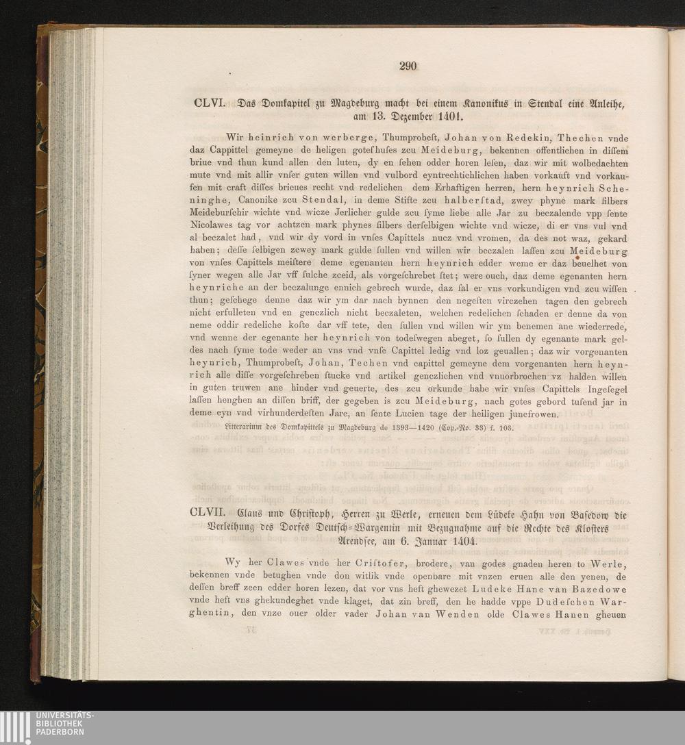 CLVI. Das Domcapitel zu Magdeburg macht bei einem Kanonikus in Stendal eine Anleihe,[...]