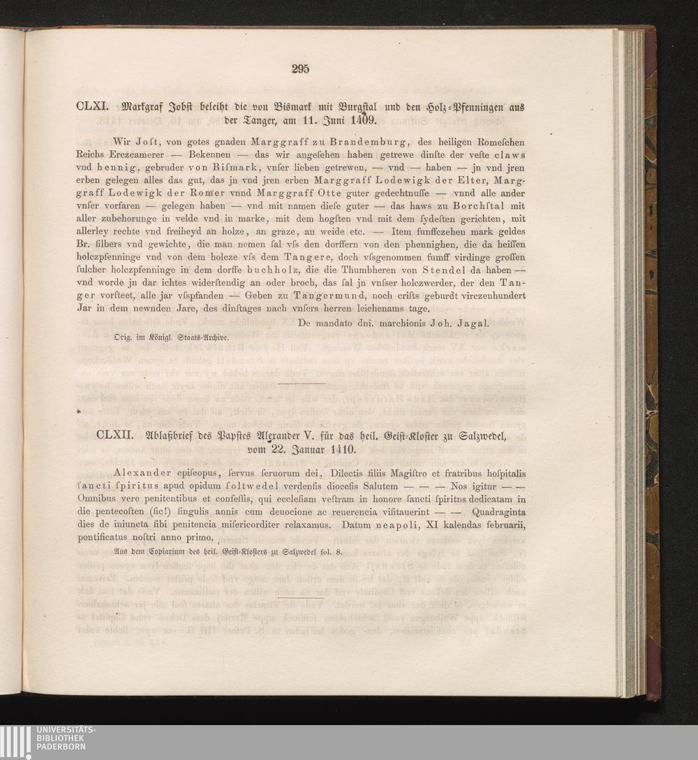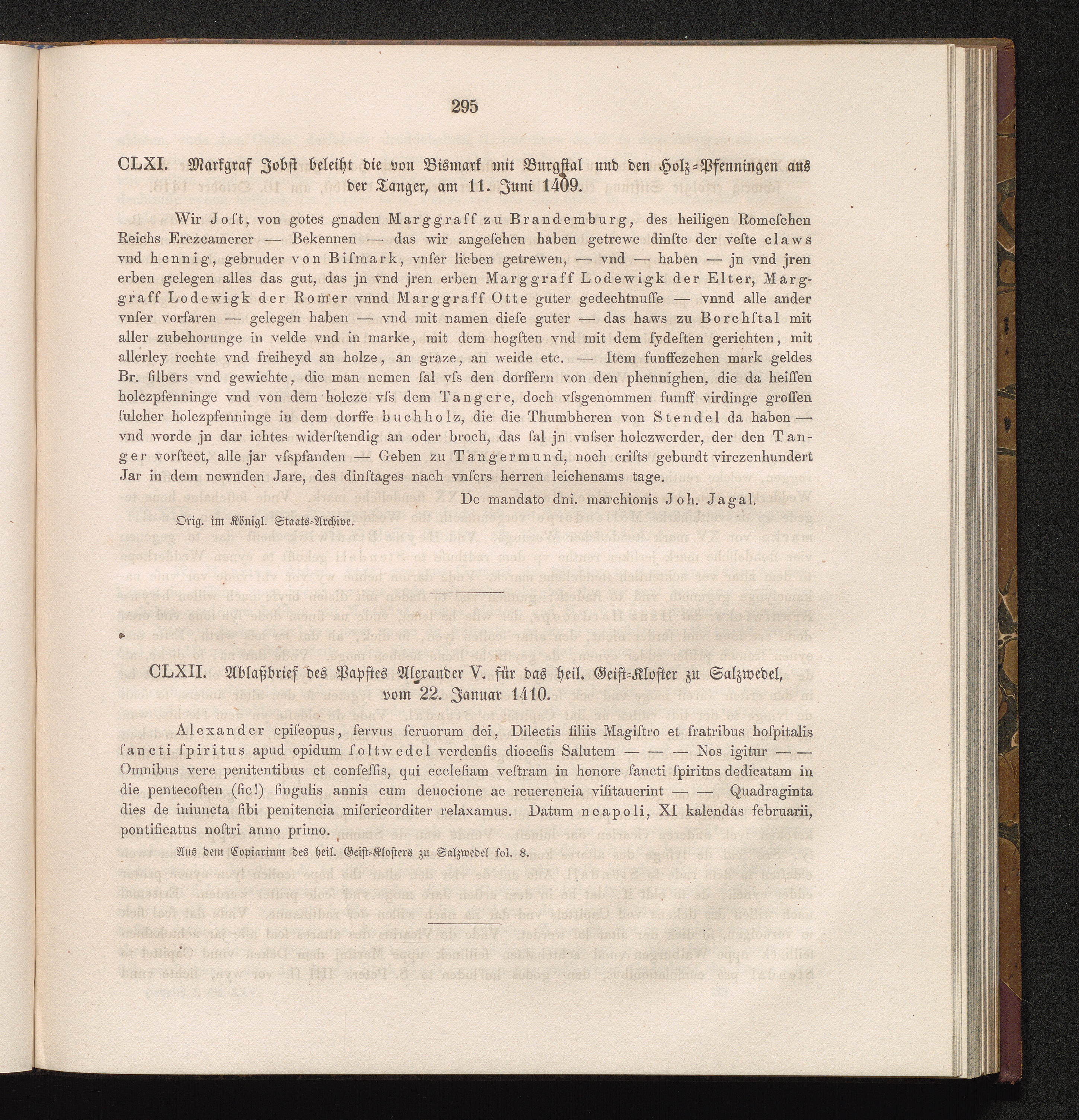CLXI. Markgraf Jobst beleiht die von Bismark und Burgstal und den Holz-Pfenningen[...]