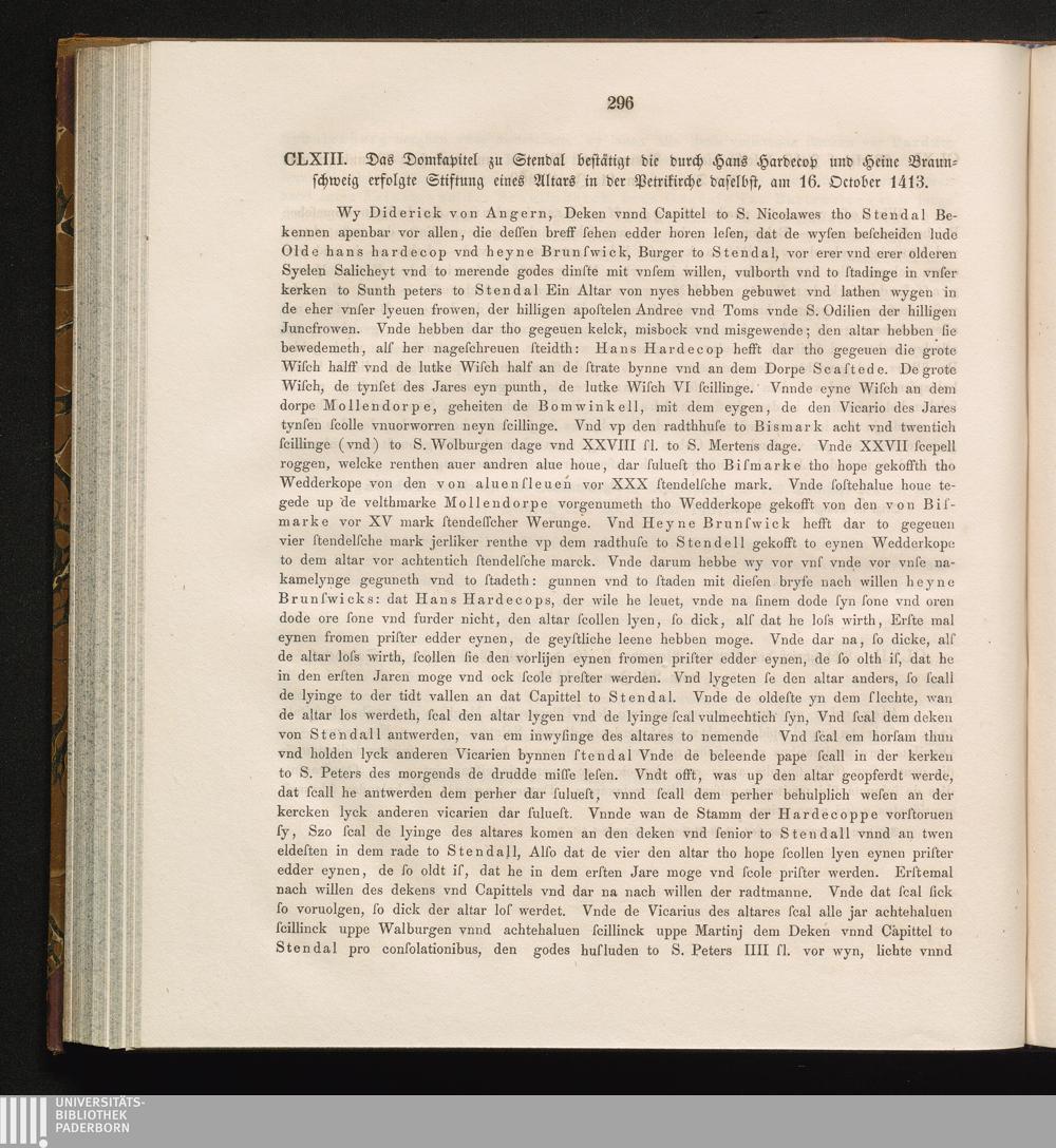 CLXIII. Das Domcapitel zu Stendal bestätigt die durch Hans Hardecop und Heine Braunschweig[...]