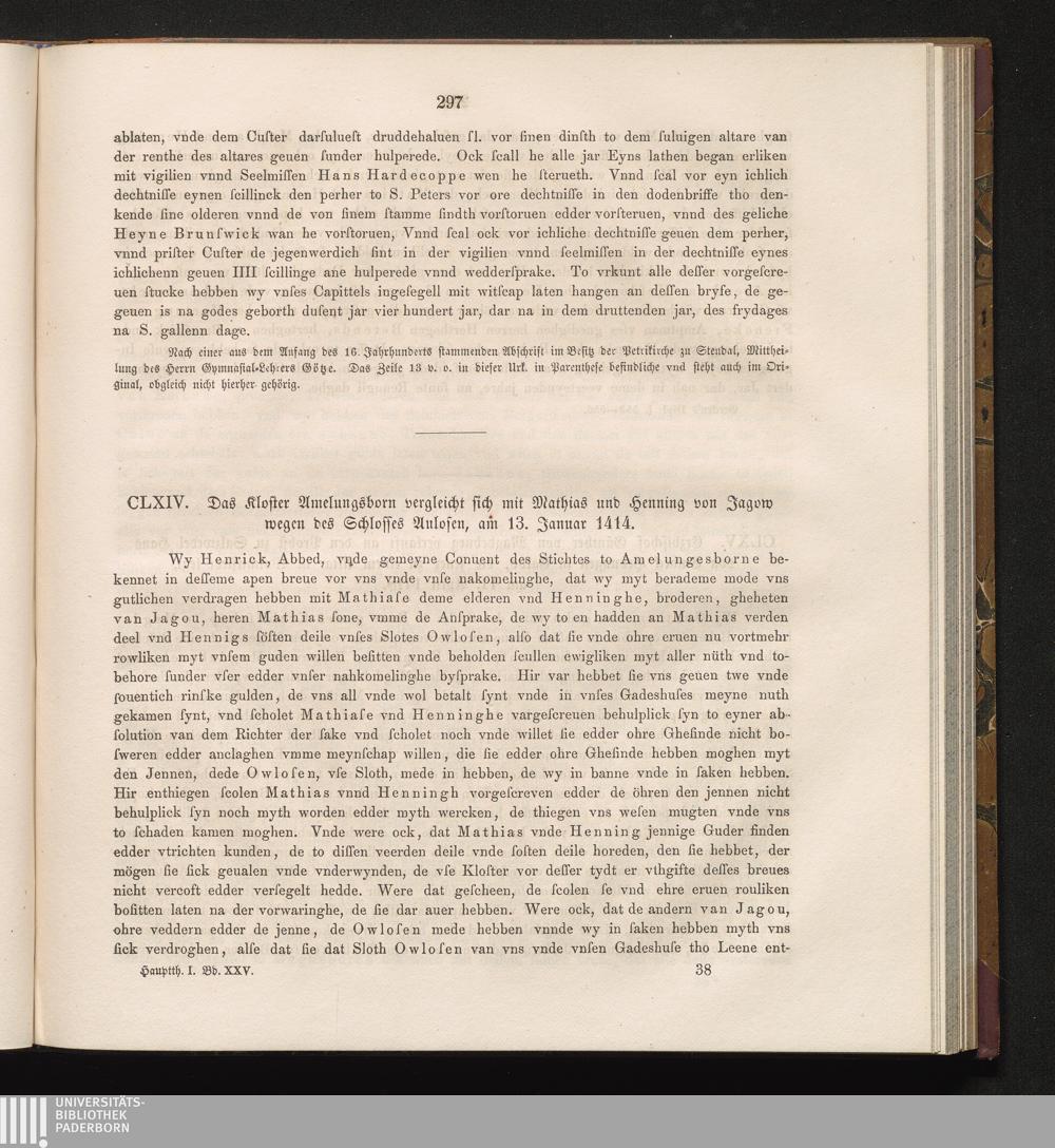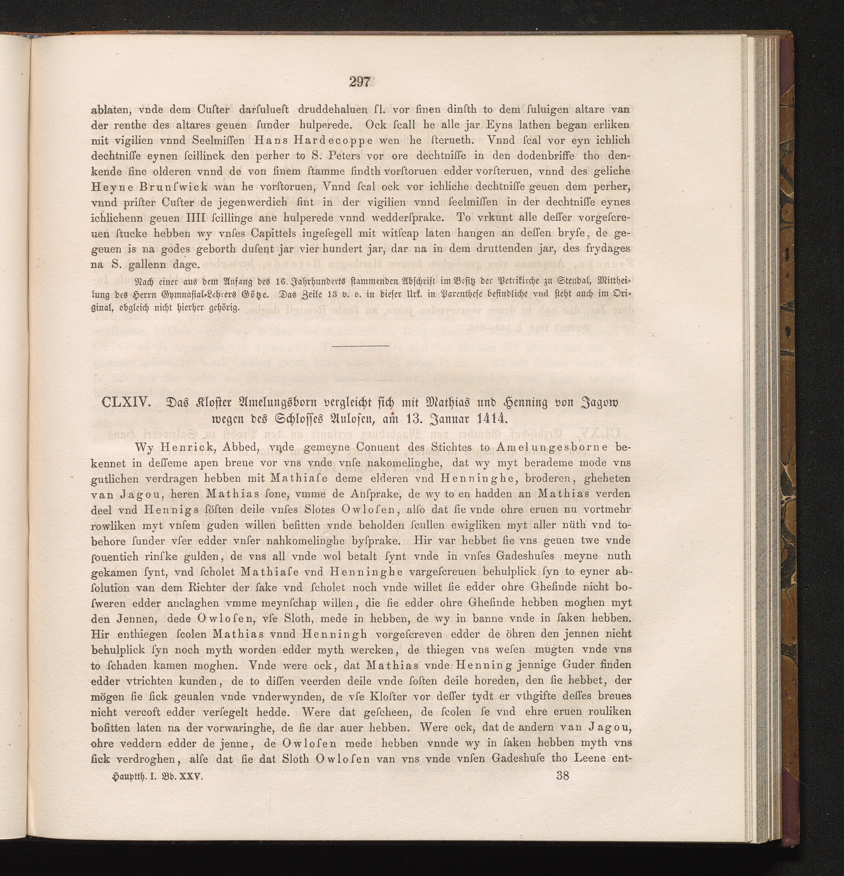 CLXIV. Das Kloster Amelungsborn vergleicht sich mit Mathias und Henning von Jagow[...]