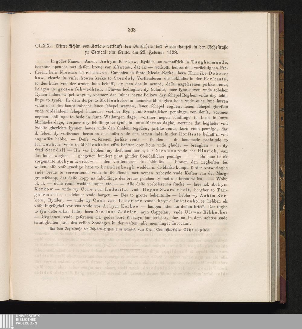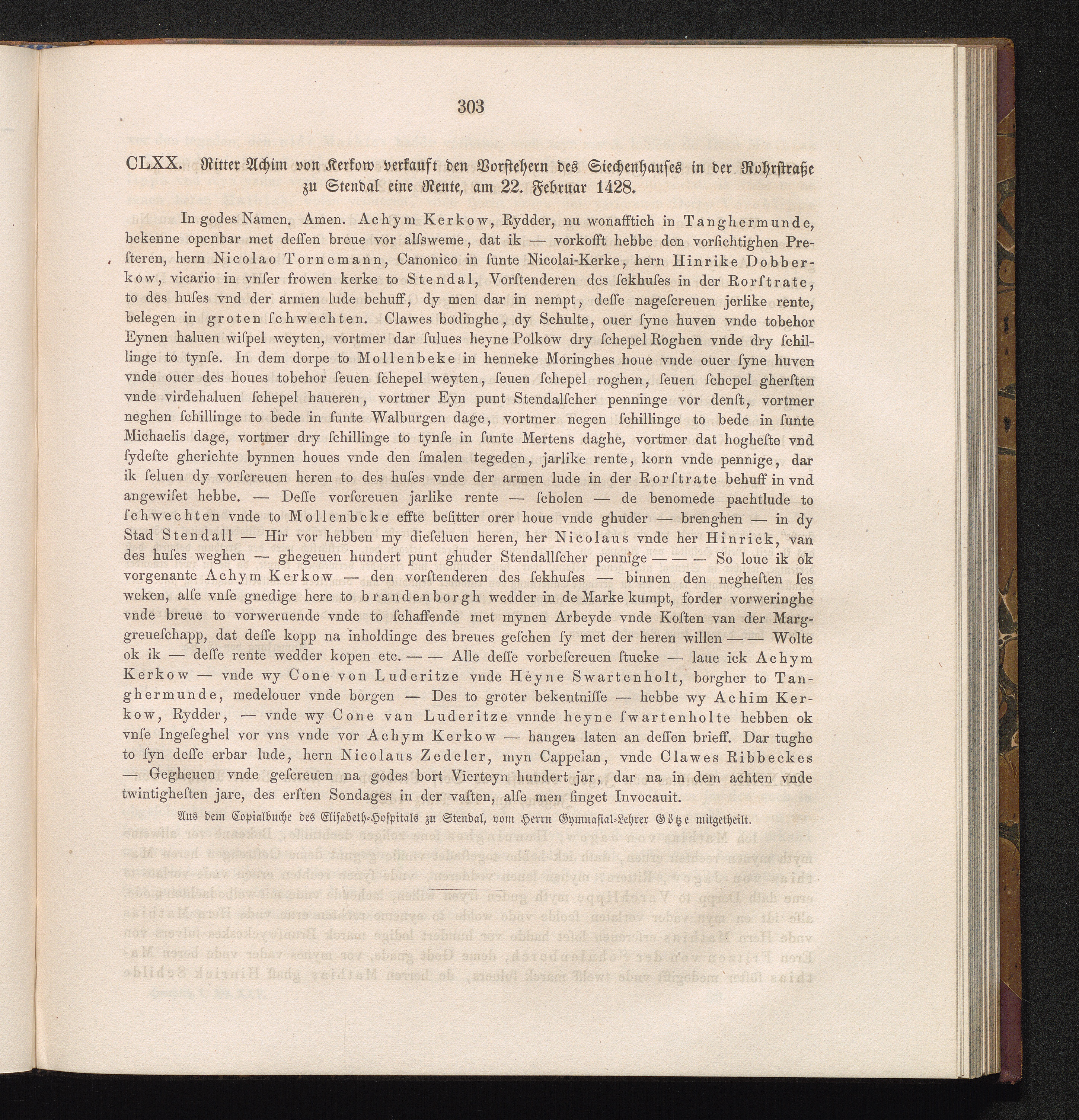CLXX. Ritter Achim von Kerkow verkauft den Vorstehern des Siechenhauses in der Rohrstraße[...]