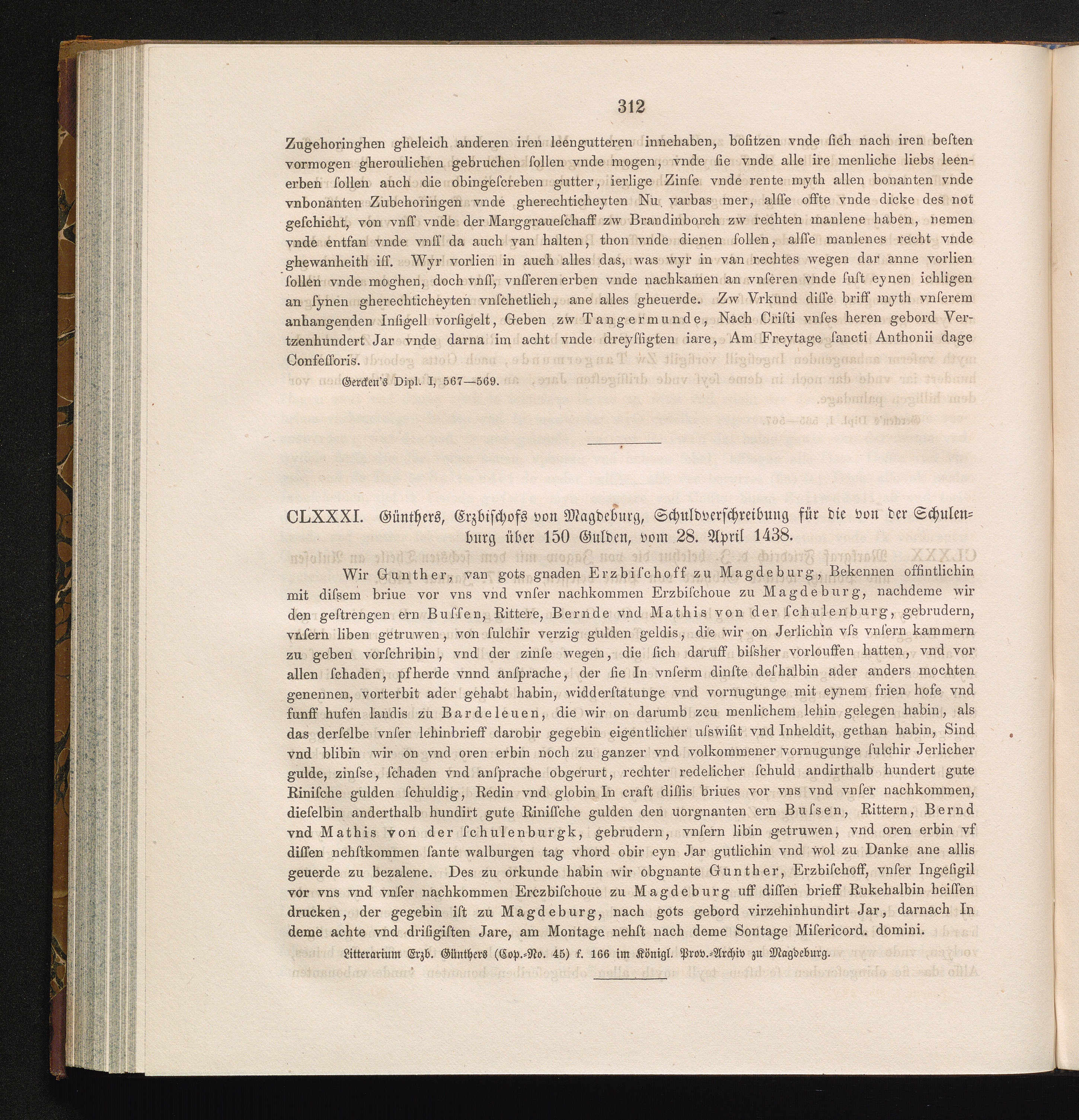 CLXXXI. Günthers, Erzbischofs von Magdeburg, Schuldverschreibung für die von der[...]