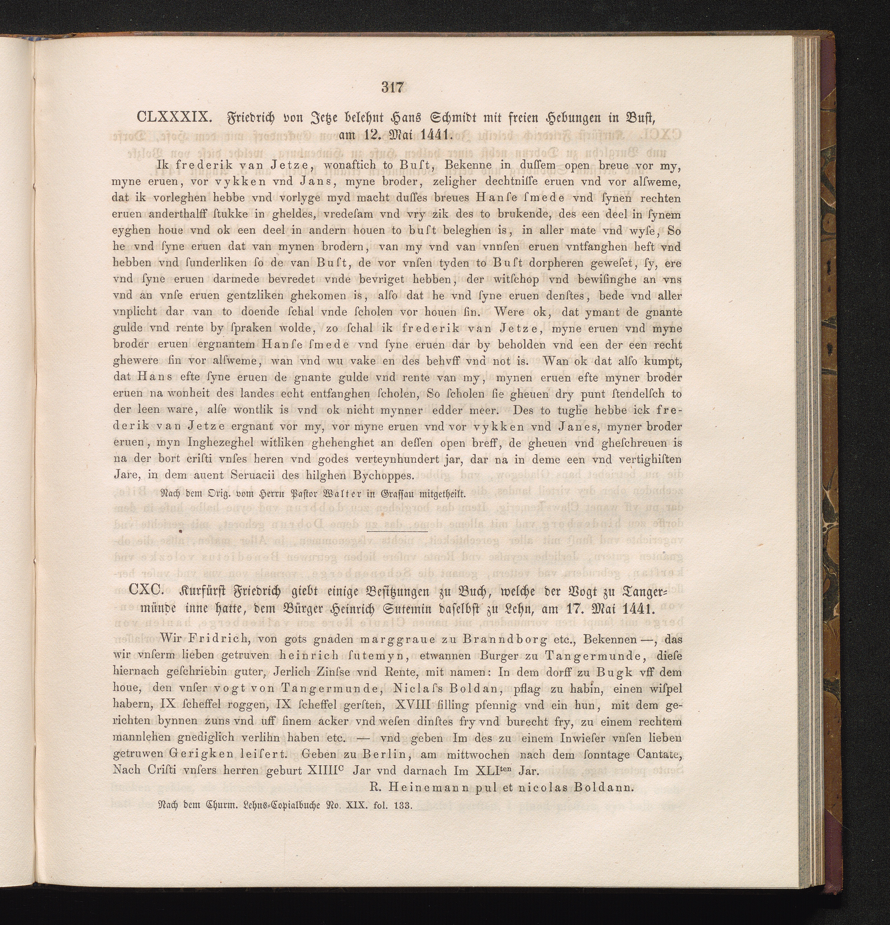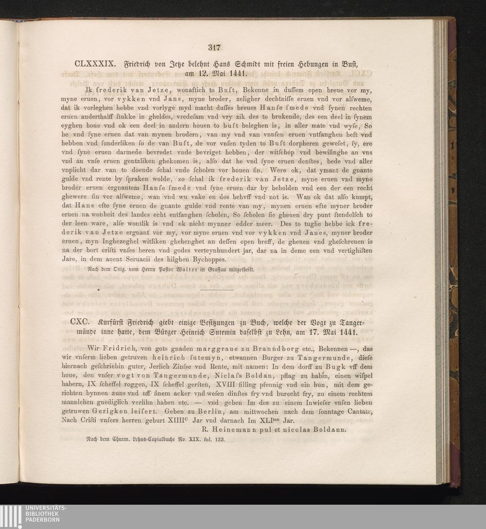 CLXXXIX. Friedrich von Jetze belehnt Hans Schmidt mit freien Hebungen in Bust, am[...]