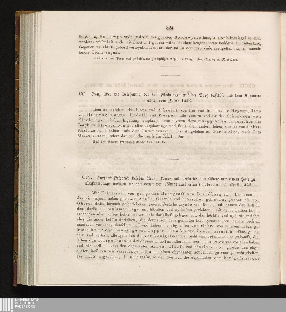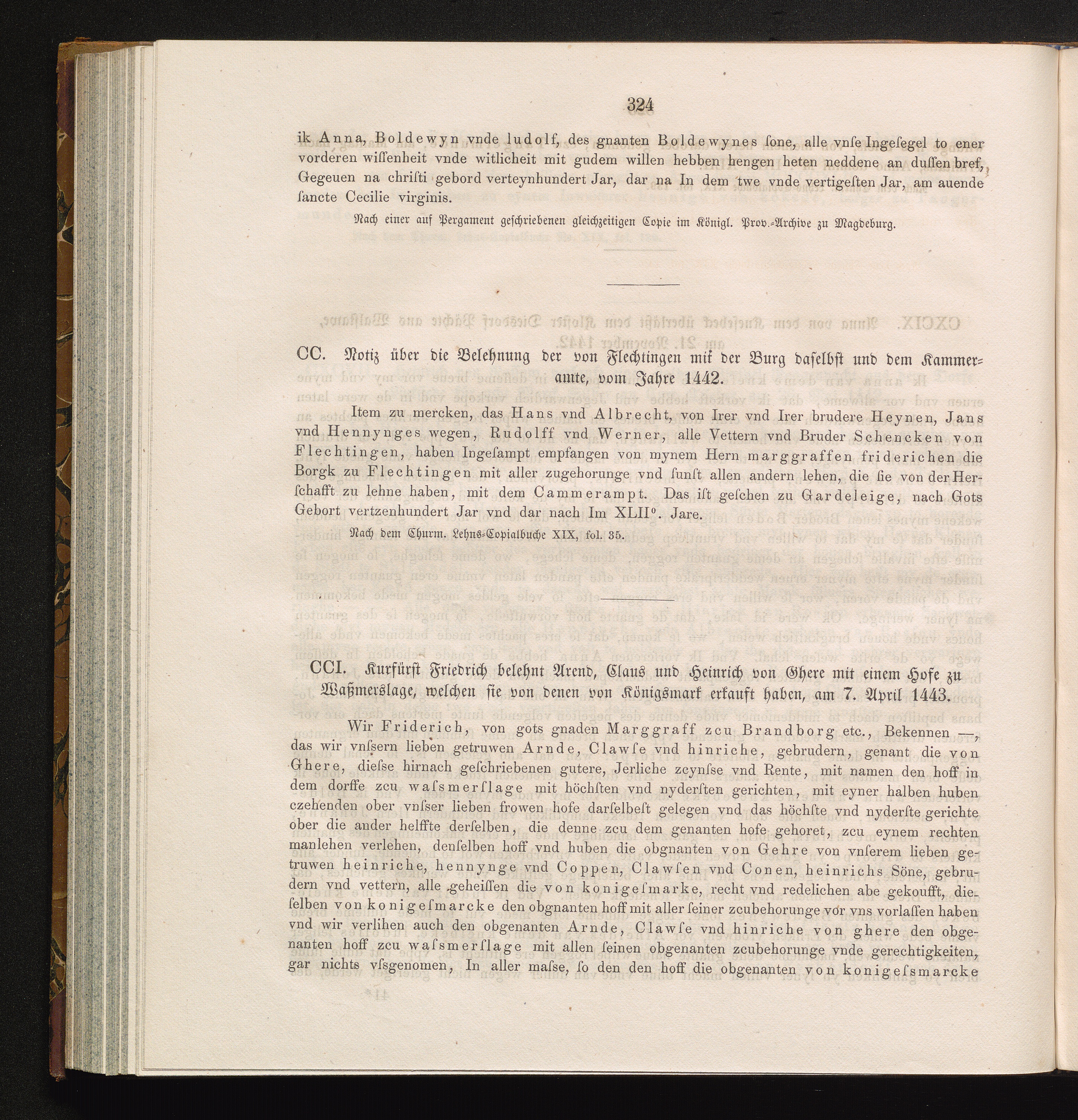 CC. Notiz über die Belehnung der von Flechtingen mit der Burg daselbst und dem Kammeramte,[...]