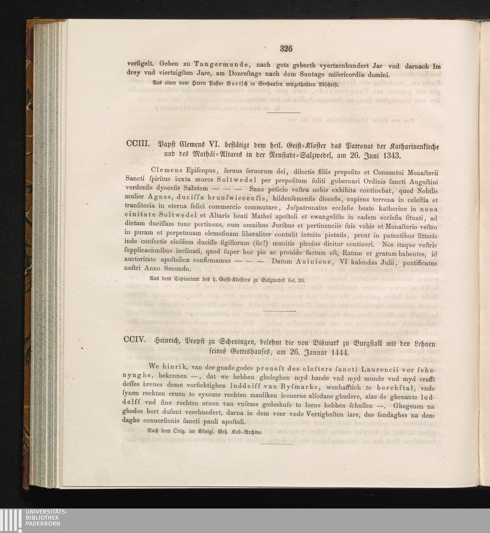 CCIII. Papst Clemens VI. bestätigt dem heil. Geist-Kloster das Patronat der Katharinenkirche[...]