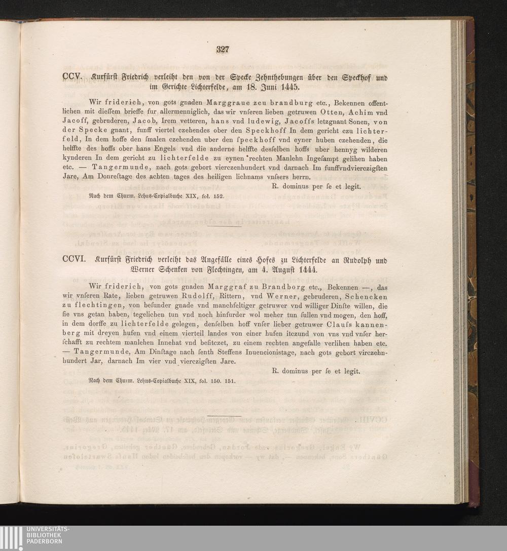 CCV. Kurfürst Friedrich verleiht den von der Specke Zehnthebungen über den Speckhof[...]