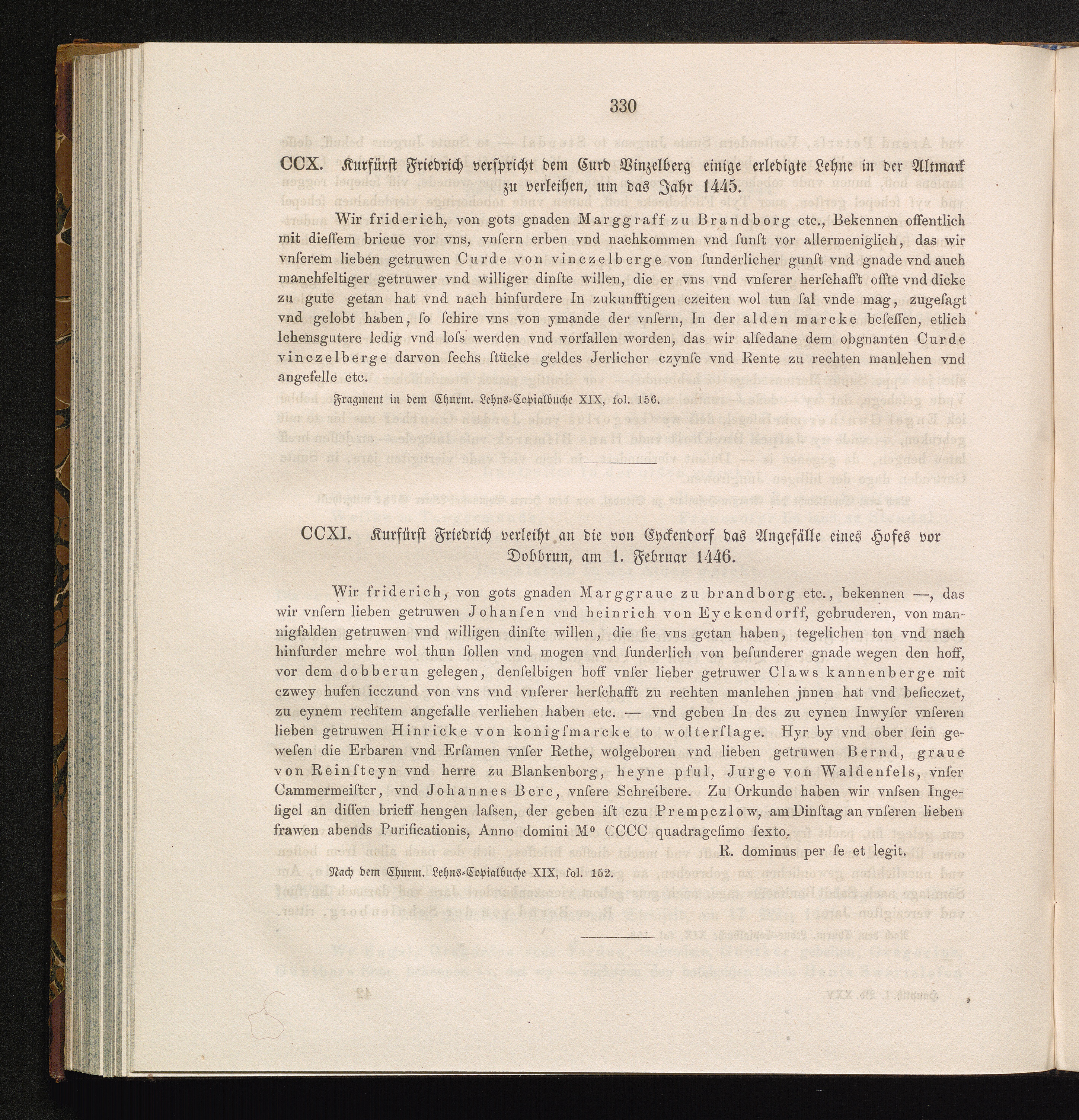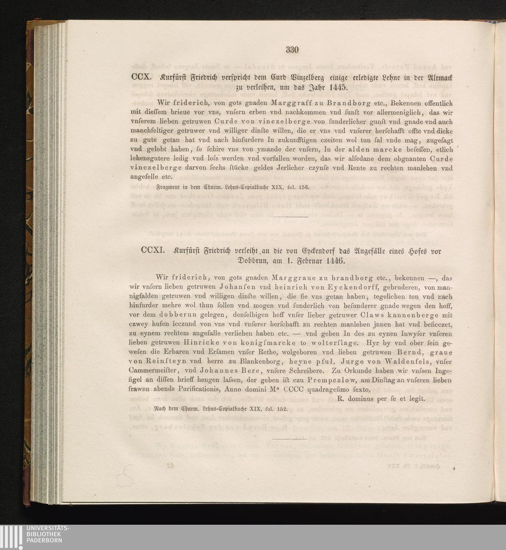 CCX. Kurfürst Friedrich verspricht dem Curd Vinzelberg einige erledigte Lehne in[...]