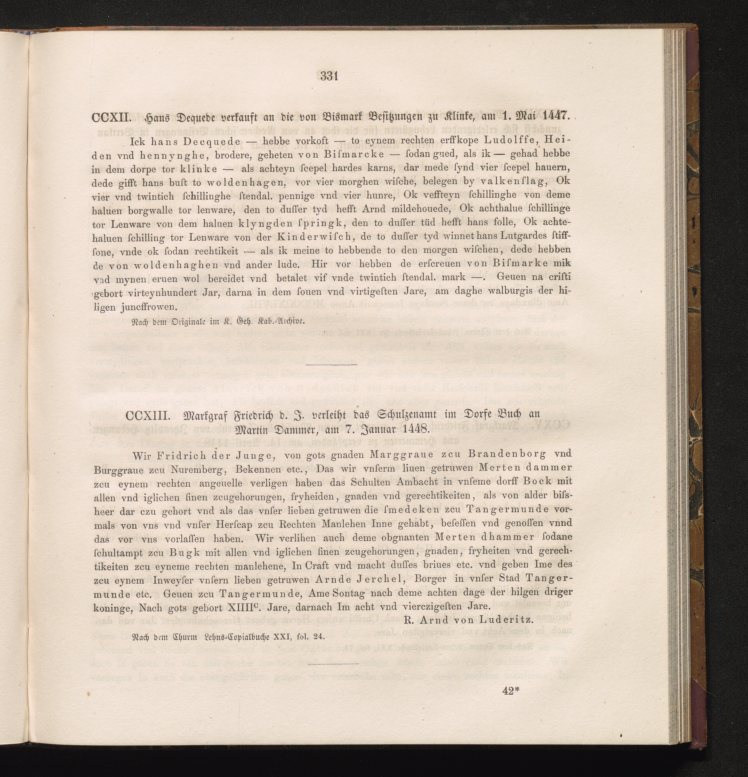 CCXII. Hans Dequede verkauft an die von Bismark Besitzungen zu Klinke, am 1. Mai[...]