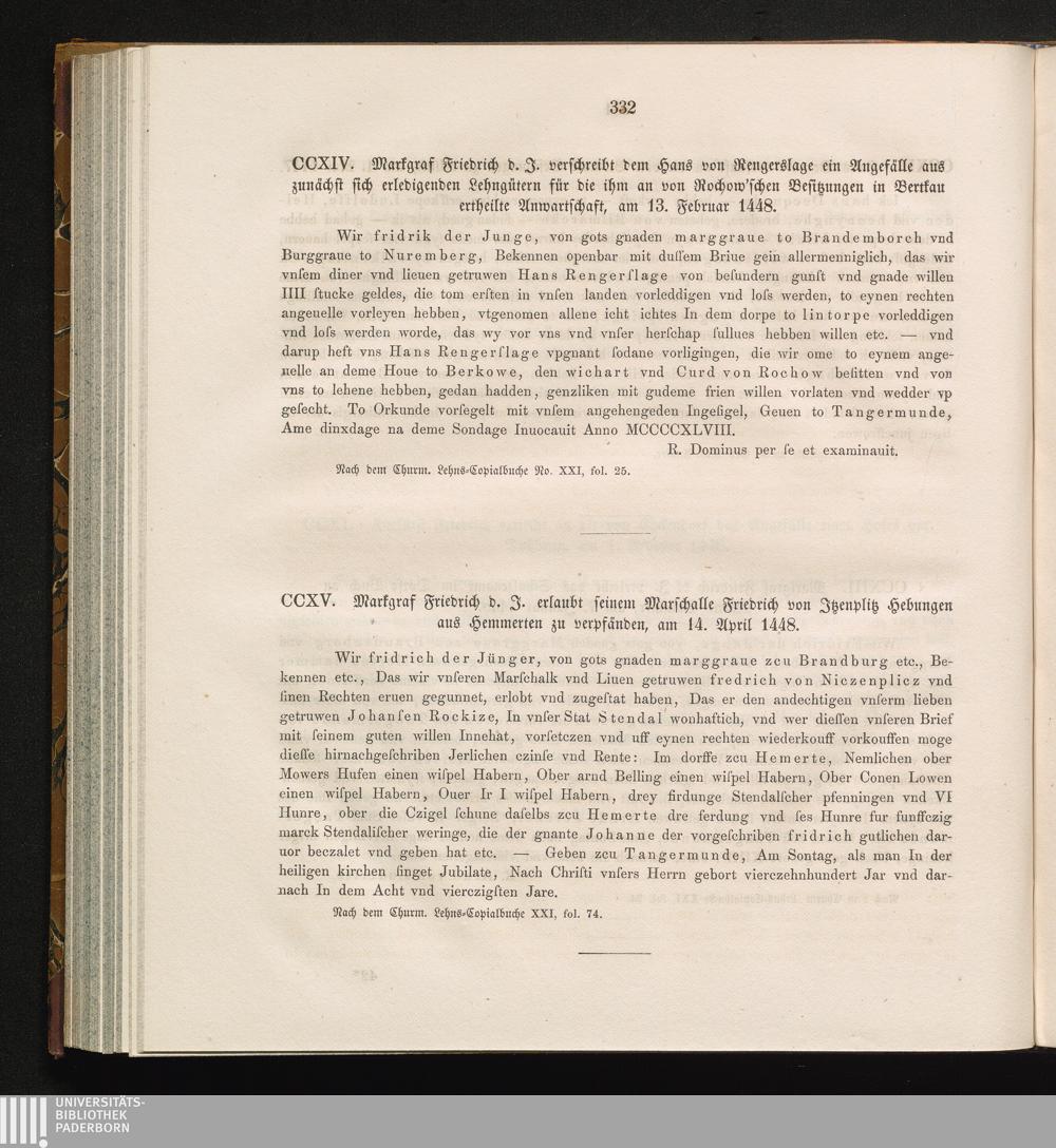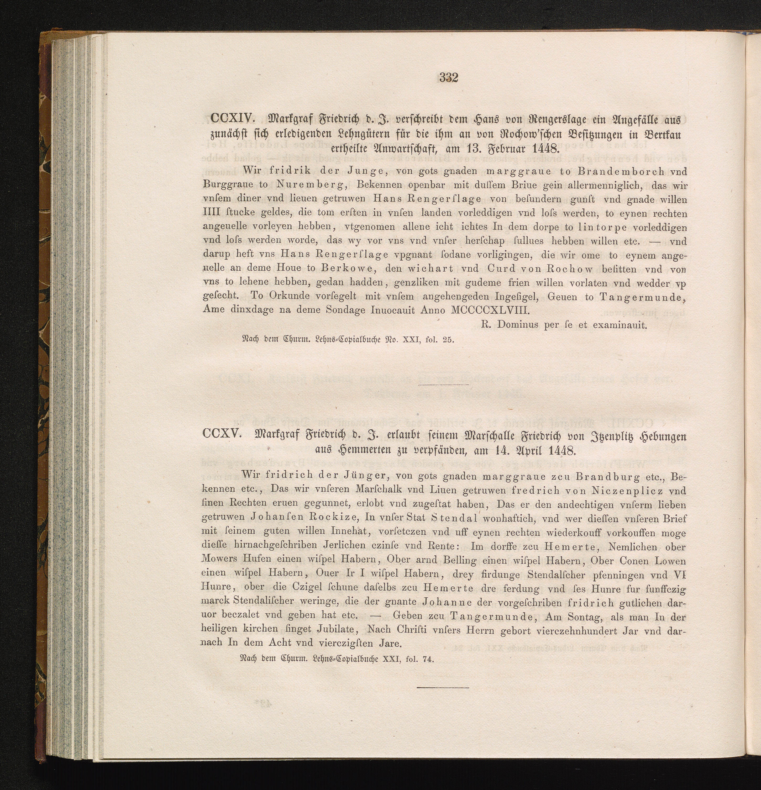 CCXIV. Markgraf Friedrich d. J. verschreibt dem Hans von Rengerslage ein Angefälle[...]