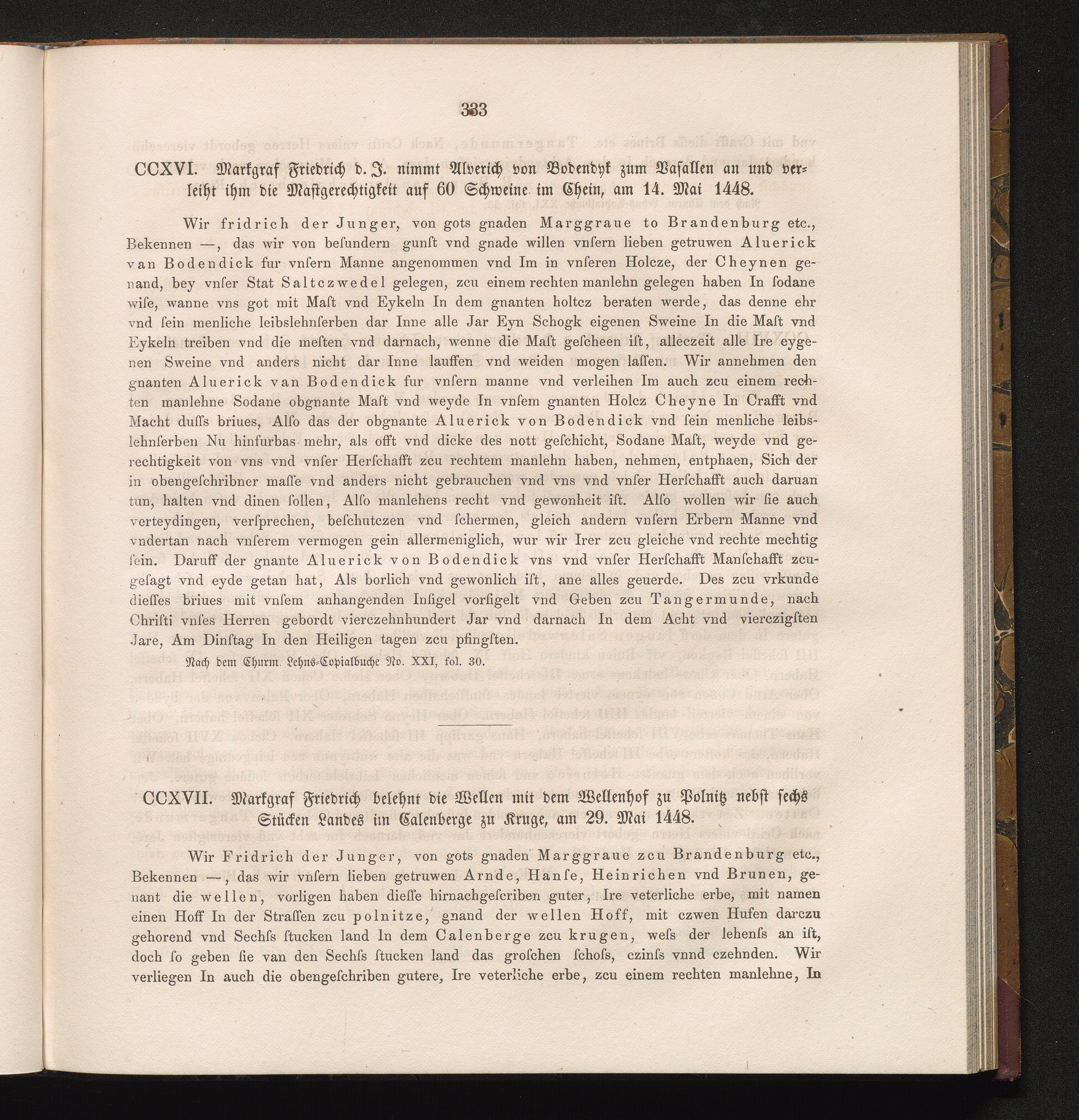 CCXVI. Markgraf Friedrich d. J. nimmt Alverich von Bodendyk zum Vasallen an und verleiht[...]